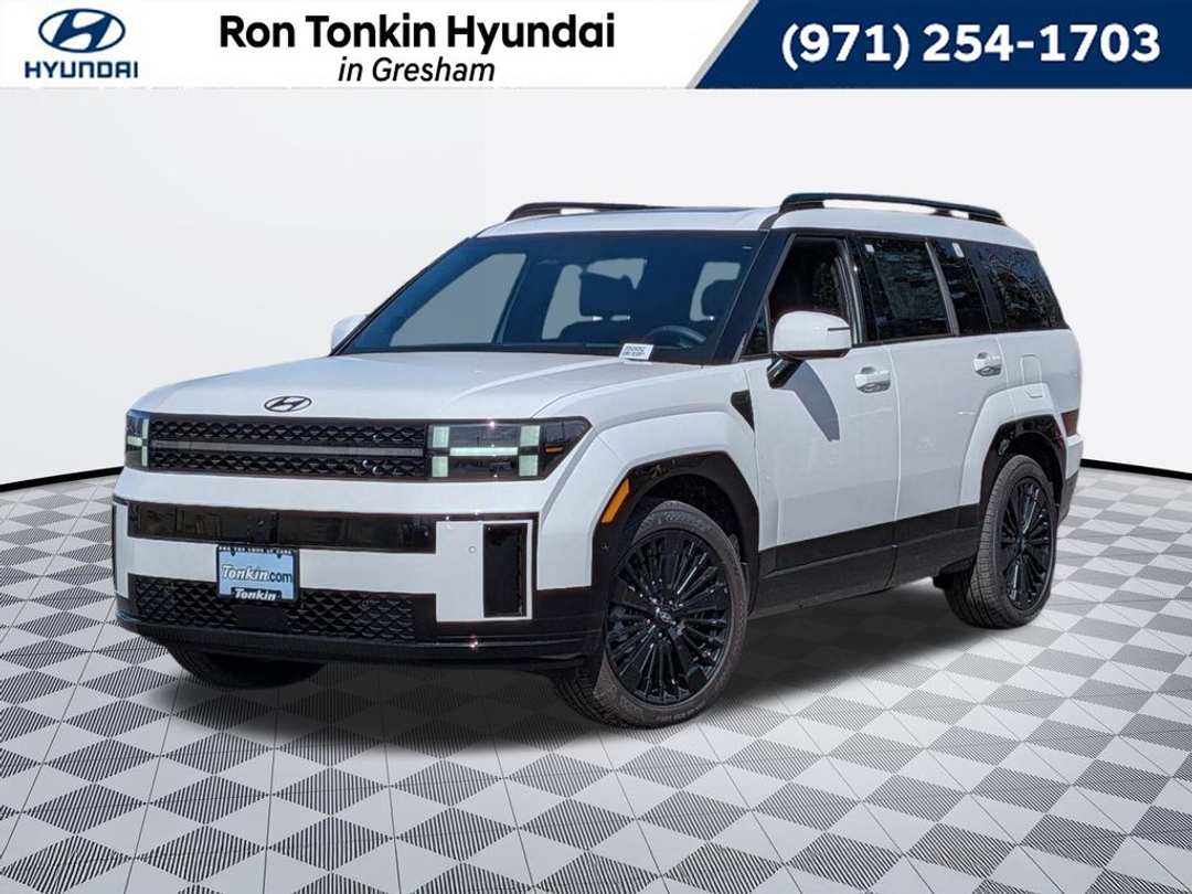 2026 Hyundai Santa Fe Hybrid Calligraphy I4 6-Speed Automatic with Shiftronic AWD 4D Sport Utility Serenity White I4, 12 Speakers, 3rd row seats: bench, 4-Wheel Disc Brakes, ABS brakes, Air Conditioning, Alloy wheels, AM/FM radio: SiriusXM, Apple CarPlay & Android Auto, Auto High-beam Headlights, Auto-dimming Rear-View mirror, Automatic temperature control, Brake assist, Bumpers: body-color, Cargo Blocks, Cargo Cover/Screen, Cargo Net, Cargo Tray, Carpeted Floor Mats, Delay-off headlights, Driver door bin, Driver vanity mirror, Dual front impact airbags, Dual front side impact airbags, Electronic Stability Control, Emergency communication system, Exterior Parking Camera Rear, First Aid Kit, Four wheel independent suspension, Front anti-roll bar, Front Bucket Seats, Front Center Armrest, Front dual zone A/C, Front reading lights, Fully automatic headlights, Garage door transmitter: HomeLink, Heads-Up Display, Heated and Ventilated Front Bucket Seats, Heated door mirrors, Heated front seats, Heated rear seats, Heated steering wheel, Illuminated entry, Knee airbag, Leather steering wheel, Low tire pressure warning, Memory seat, Mudguards, Navigation System, Occupant sensing airbag, Option Group 01, Outside temperature display, Overhead airbag, Overhead console, Panic alarm, Passenger door bin, Passenger vanity mirror, Power door mirrors, Power driver seat, Power Liftgate, Power moonroof, Power passenger seat, Power steering, Power windows, Quilted Premium Nappa Leather Seat Trim, Radio: AM/FM/HD Bose Premium Audio System, Rain sensing wipers, Rear anti-roll bar, Rear side impact airbag, Rear window defroster, Rear window wiper, Remote keyless entry, Security system, Speed control, Speed-sensing steering, Split folding rear seat, Spoiler, Steering wheel mounted audio controls, Tachometer, Telescoping steering wheel, Tilt steering wheel, Traction control, Trip computer, Turn signal indicator mirrors, Variably intermittent wipers, Ventilated front seats, Wheels: 20" x 8.5J Unique Dark Finish Alloy, I4. Call for availability. Come in to Ron Tonkin Gresham Hyundai to test drive today! DA2028 View our entire inventory at https://www.rontonkinhyundai.com/ Pricing includes all applicable factory rebates, and discounts, buyer must finance through HMFA on approved credit.