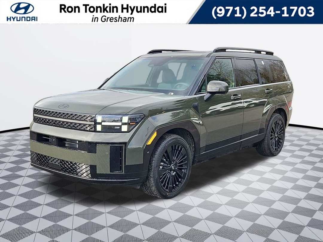2026 Hyundai Santa Fe Hybrid Calligraphy I4 6-Speed Automatic with Shiftronic AWD 4D Sport Utility Rockwood Green I4, 12 Speakers, 3rd row seats: bench, 4-Wheel Disc Brakes, ABS brakes, Air Conditioning, Alloy wheels, AM/FM radio: SiriusXM, Apple CarPlay & Android Auto, Auto High-beam Headlights, Auto-dimming Rear-View mirror, Automatic temperature control, Brake assist, Bumpers: body-color, Cargo Cover/Screen, Cargo Net, Cargo Organizer, Cargo Tray, Carpeted Floor Mats, Delay-off headlights, Driver door bin, Driver vanity mirror, Dual front impact airbags, Dual front side impact airbags, Electronic Stability Control, Emergency communication system, Exterior Parking Camera Rear, First Aid Kit, Four wheel independent suspension, Front anti-roll bar, Front Bucket Seats, Front Center Armrest, Front dual zone A/C, Front reading lights, Fully automatic headlights, Garage door transmitter: HomeLink, Heads-Up Display, Heated and Ventilated Front Bucket Seats, Heated door mirrors, Heated front seats, Heated rear seats, Heated steering wheel, Illuminated entry, Knee airbag, Leather steering wheel, Low tire pressure warning, Memory seat, Navigation System, Occupant sensing airbag, Option Group 01, Outside temperature display, Overhead airbag, Overhead console, Panic alarm, Passenger door bin, Passenger vanity mirror, Power door mirrors, Power driver seat, Power Liftgate, Power moonroof, Power passenger seat, Power steering, Power windows, Quilted Premium Nappa Leather Seat Trim, Radio: AM/FM/HD Bose Premium Audio System, Rain sensing wipers, Rear anti-roll bar, Rear side impact airbag, Rear window defroster, Rear window wiper, Remote keyless entry, Roadside Assistance Kit, Security system, Speed control, Speed-sensing steering, Split folding rear seat, Spoiler, Steering wheel mounted audio controls, Tachometer, Telescoping steering wheel, Tilt steering wheel, Traction control, Trip computer, Turn signal indicator mirrors, Variably intermittent wipers, Ventilated front seats, Wheels: 20" x 8.5J Unique Dark Finish Alloy, I4. Call for availability. Come in to Ron Tonkin Gresham Hyundai to test drive today! DA2028 View our entire inventory at https://www.rontonkinhyundai.com/ Pricing includes all applicable factory rebates, and discounts, buyer must finance through HMFA on approved credit. Price excludes tax, title, license, doc fee and dealer added accessories. Price includes: $4000 - Hyundai HMF Dealer Choice : $4000 discount and 5.39% APR for 24 months. $44.05 per $1000 financed. Available to well qualified buyers who finance through Hyundai Motor Finance. H704. Exp. 03/31/2026