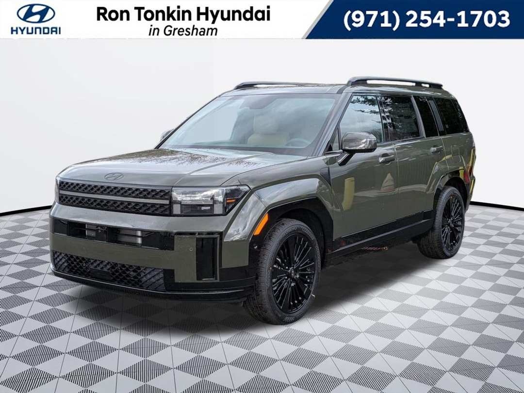 2026 Hyundai Santa Fe Hybrid Calligraphy I4 6-Speed Automatic with Shiftronic AWD 4D Sport Utility Rockwood Green I4, 12 Speakers, 3rd row seats: bench, 4-Wheel Disc Brakes, ABS brakes, Air Conditioning, Alloy wheels, AM/FM radio: SiriusXM, Apple CarPlay & Android Auto, Auto High-beam Headlights, Auto-dimming Rear-View mirror, Automatic temperature control, Brake assist, Bumpers: body-color, Cargo Net, Cargo Tray, Carpeted Floor Mats, Delay-off headlights, Driver door bin, Driver vanity mirror, Dual front impact airbags, Dual front side impact airbags, Electronic Stability Control, Emergency communication system, Exterior Parking Camera Rear, First Aid Kit, Four wheel independent suspension, Front anti-roll bar, Front Bucket Seats, Front Center Armrest, Front dual zone A/C, Front reading lights, Fully automatic headlights, Garage door transmitter: HomeLink, Heads-Up Display, Heated and Ventilated Front Bucket Seats, Heated door mirrors, Heated front seats, Heated rear seats, Heated steering wheel, Illuminated entry, Knee airbag, Leather steering wheel, Low tire pressure warning, Memory seat, Navigation System, Occupant sensing airbag, Option Group 01, Outside temperature display, Overhead airbag, Overhead console, Panic alarm, Passenger door bin, Passenger vanity mirror, Power door mirrors, Power driver seat, Power Liftgate, Power moonroof, Power passenger seat, Power steering, Power windows, Quilted Premium Nappa Leather Seat Trim, Radio: AM/FM/HD Bose Premium Audio System, Rain sensing wipers, Rear anti-roll bar, Rear side impact airbag, Rear window defroster, Rear window wiper, Remote keyless entry, Roadside Assistance Kit, Roof Rack Crossbars, Security system, Speed control, Speed-sensing steering, Split folding rear seat, Spoiler, Steering wheel mounted audio controls, Tachometer, Telescoping steering wheel, Tilt steering wheel, Traction control, Trip computer, Turn signal indicator mirrors, Variably intermittent wipers, Ventilated front seats, Wheels: 20" x 8.5J Unique Dark Finish Alloy, I4. Call for availability. Come in to Ron Tonkin Gresham Hyundai to test drive today! DA2028 View our entire inventory at https://www.rontonkinhyundai.com/ Pricing includes all applicable factory rebates, and discounts, buyer must finance through HMFA on approved credit. Price excludes tax, title, license, doc fee and dealer added accessories. Price includes: $4000 - Hyundai HMF Dealer Choice : $4000 discount and 5.39% APR for 24 months. $44.05 per $1000 financed. Available to well qualified buyers who finance through Hyundai Motor Finance. H704. Exp. 03/31/2026