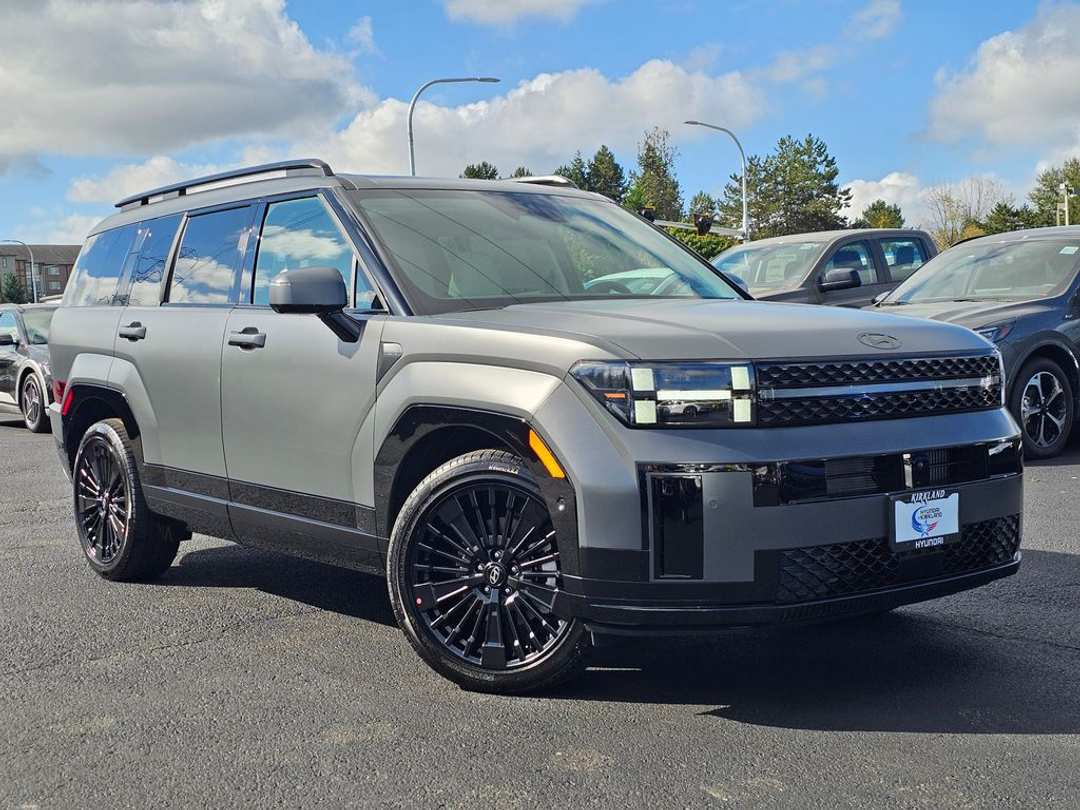 2026 Hyundai Santa Fe Hybrid CalligraphyI4 6-Speed Automatic with Shiftronic AWD 4D Sport Utility Ecotronic Gray Matte I4, 12 Speakers, 3rd row seats: bench, 4-Wheel Disc Brakes, ABS brakes, Air Conditioning, All Season Fitted Liners, Alloy wheels, AM/FM radio: SiriusXM, Apple CarPlay & Android Auto, Auto High-beam Headlights, Auto-dimming Rear-View mirror, Automatic temperature control, Brake assist, Bumpers: body-color, Cargo Cover/Screen, Cargo Net, Cargo Tray, Carpeted Floor Mats, Delay-off headlights, Driver door bin, Driver vanity mirror, Dual front impact airbags, Dual front side impact airbags, Electronic Stability Control, Emergency communication system, Exterior Parking Camera Rear, First Aid Kit, Four wheel independent suspension, Front anti-roll bar, Front Bucket Seats, Front Center Armrest, Front dual zone A/C, Front reading lights, Fully automatic headlights, Garage door transmitter: HomeLink, Heads-Up Display, Heated and Ventilated Front Bucket Seats, Heated door mirrors, Heated front seats, Heated rear seats, Heated steering wheel, Illuminated entry, Knee airbag, Leather steering wheel, Low tire pressure warning, Memory seat, Navigation System, Occupant sensing airbag, Option Group 01, Outside temperature display, Overhead airbag, Overhead console, Panic alarm, Passenger door bin, Passenger vanity mirror, Power door mirrors, Power driver seat, Power Liftgate, Power moonroof, Power passenger seat, Power steering, Power windows, Quilted Premium Nappa Leather Seat Trim, Radio: AM/FM/HD Bose Premium Audio System, Rain sensing wipers, Rear anti-roll bar, Rear side impact airbag, Rear window defroster, Rear window wiper, Remote keyless entry, Roadside Assistance Kit, Security system, Speed control, Speed-sensing steering, Split folding rear seat, Spoiler, Steering wheel mounted audio controls, Tachometer, Telescoping steering wheel, Tilt steering wheel, Traction control, Trip computer, Turn signal indicator mirrors, Variably intermittent wipers, Ventilated front seats, Wheels: 20" x 8.5J Unique Dark Finish Alloy, I4. Prices good through 5-31-2025. Kirkland Price includes:$4000 - Hyundai HMF Dealer Choice : $4000 discount and 5.39% APR for 24 months. $44.05 per $1000 financed. Available to well qualified buyers who finance through Hyundai Motor Finance. H704.