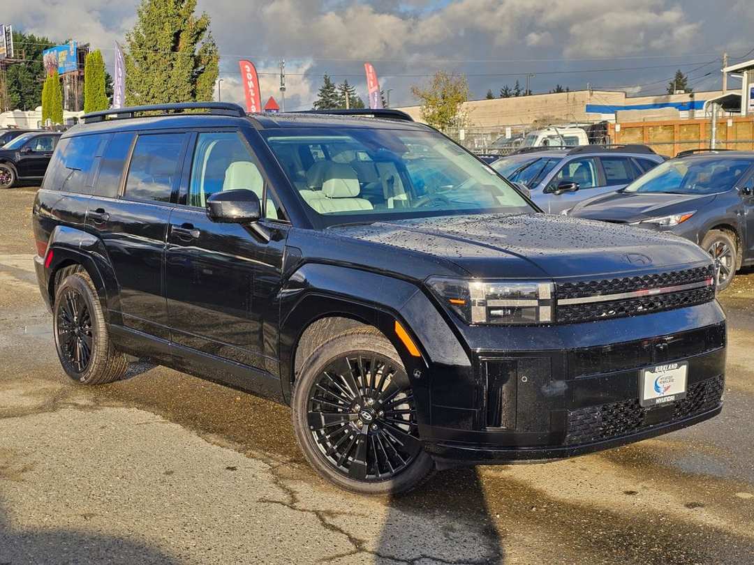 2026 Hyundai Santa Fe Hybrid CalligraphyI4 6-Speed Automatic with Shiftronic AWD 4D Sport Utility Phantom Black I4, 12 Speakers, 3rd row seats: bench, 4-Wheel Disc Brakes, ABS brakes, Air Conditioning, All Season Fitted Liners, Alloy wheels, AM/FM radio: SiriusXM, Apple CarPlay & Android Auto, Auto High-beam Headlights, Auto-dimming Rear-View mirror, Automatic temperature control, Brake assist, Bumpers: body-color, Cargo Blocks, Cargo Cover/Screen, Cargo Net, Carpeted Floor Mats, Delay-off headlights, Driver door bin, Driver vanity mirror, Dual front impact airbags, Dual front side impact airbags, Electronic Stability Control, Emergency communication system, Exterior Parking Camera Rear, First Aid Kit, Four wheel independent suspension, Front anti-roll bar, Front Bucket Seats, Front Center Armrest, Front dual zone A/C, Front reading lights, Fully automatic headlights, Garage door transmitter: HomeLink, Heads-Up Display, Heated and Ventilated Front Bucket Seats, Heated door mirrors, Heated front seats, Heated rear seats, Heated steering wheel, Illuminated entry, Knee airbag, Leather steering wheel, Low tire pressure warning, Memory seat, Navigation System, Occupant sensing airbag, Option Group 01, Outside temperature display, Overhead airbag, Overhead console, Panic alarm, Passenger door bin, Passenger vanity mirror, Power door mirrors, Power driver seat, Power Liftgate, Power moonroof, Power passenger seat, Power steering, Power windows, Quilted Premium Nappa Leather Seat Trim, Radio: AM/FM/HD Bose Premium Audio System, Rain sensing wipers, Rear anti-roll bar, Rear side impact airbag, Rear window defroster, Rear window wiper, Remote keyless entry, Security system, Speed control, Speed-sensing steering, Split folding rear seat, Spoiler, Steering wheel mounted audio controls, Tachometer, Telescoping steering wheel, Tilt steering wheel, Traction control, Trip computer, Turn signal indicator mirrors, Variably intermittent wipers, Ventilated front seats, Wheels: 20" x 8.5J Unique Dark Finish Alloy, I4.