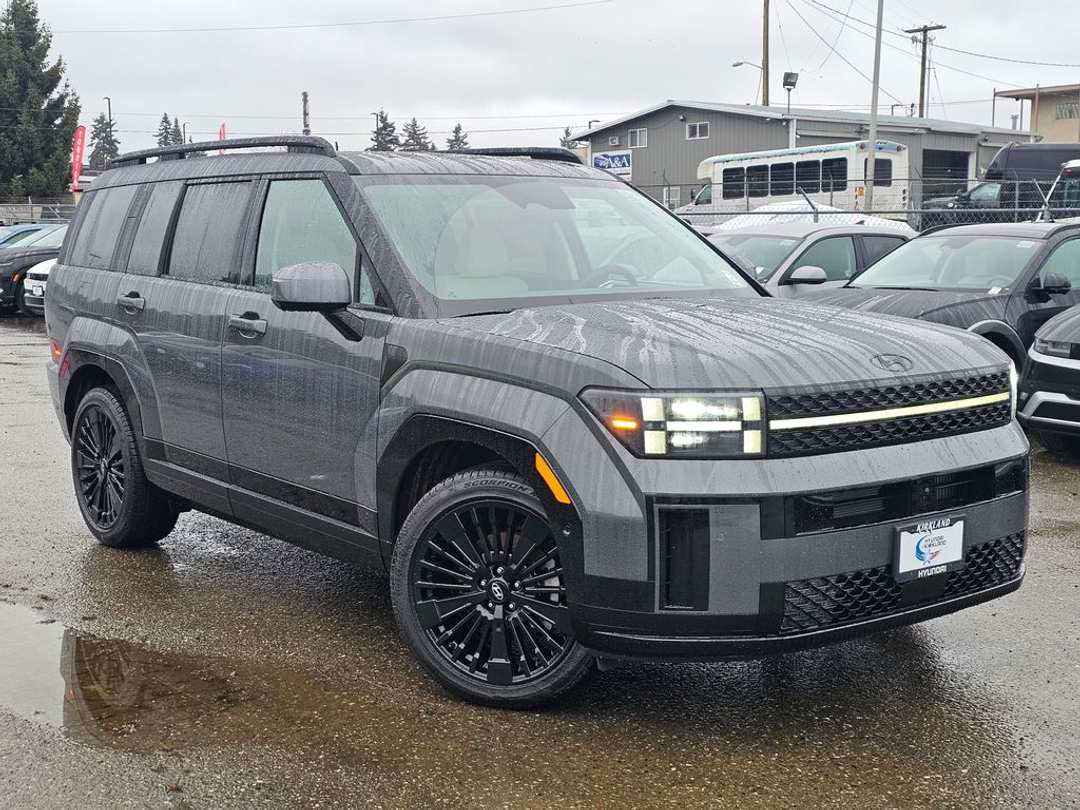 2026 Hyundai Santa Fe Hybrid CalligraphyI4 6-Speed Automatic with Shiftronic AWD 4D Sport Utility Ecotronic Gray I4, 12 Speakers, 3rd row seats: bench, 4-Wheel Disc Brakes, ABS brakes, Air Conditioning, Alloy wheels, AM/FM radio: SiriusXM, Apple CarPlay & Android Auto, Auto High-beam Headlights, Auto-dimming Rear-View mirror, Automatic temperature control, Brake assist, Bumpers: body-color, Cargo Cover/Screen, Cargo Net, Cargo Organizer, Carpeted Floor Mats, Delay-off headlights, Driver door bin, Driver vanity mirror, Dual front impact airbags, Dual front side impact airbags, Electronic Stability Control, Emergency communication system, Exterior Parking Camera Rear, First Aid Kit, Four wheel independent suspension, Front anti-roll bar, Front Bucket Seats, Front Center Armrest, Front dual zone A/C, Front reading lights, Fully automatic headlights, Garage door transmitter: HomeLink, Heads-Up Display, Heated and Ventilated Front Bucket Seats, Heated door mirrors, Heated front seats, Heated rear seats, Heated steering wheel, Illuminated entry, Knee airbag, Leather steering wheel, Low tire pressure warning, Memory seat, Navigation System, Occupant sensing airbag, Option Group 01, Outside temperature display, Overhead airbag, Overhead console, Panic alarm, Passenger door bin, Passenger vanity mirror, Power door mirrors, Power driver seat, Power Liftgate, Power moonroof, Power passenger seat, Power steering, Power windows, Quilted Premium Nappa Leather Seat Trim, Radio: AM/FM/HD Bose Premium Audio System, Rain sensing wipers, Rear anti-roll bar, Rear side impact airbag, Rear window defroster, Rear window wiper, Remote keyless entry, Security system, Speed control, Speed-sensing steering, Split folding rear seat, Spoiler, Steering wheel mounted audio controls, Tachometer, Telescoping steering wheel, Tilt steering wheel, Traction control, Trip computer, Turn signal indicator mirrors, Variably intermittent wipers, Ventilated front seats, Wheels: 20" x 8.5J Unique Dark Finish Alloy, I4. Prices good through 5-31-2025. Kirkland Price includes:$4000 - Hyundai HMF Dealer Choice : $4000 discount and 5.39% APR for 24 months. $44.05 per $1000 financed. Available to well qualified buyers who finance through Hyundai Motor Finance. H704.