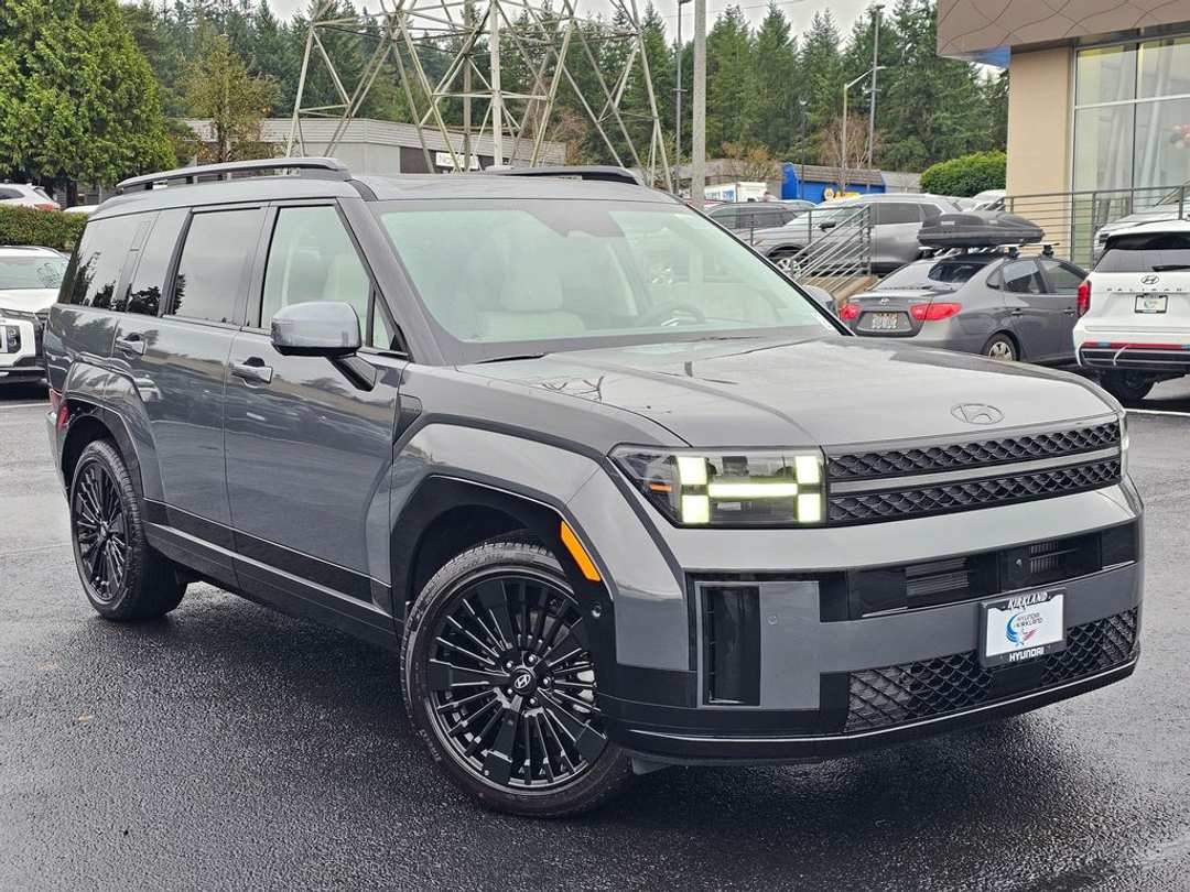 2026 Hyundai Santa Fe Hybrid CalligraphyI4 6-Speed Automatic with Shiftronic AWD 4D Sport Utility Ecotronic Gray I4, 12 Speakers, 3rd row seats: bench, 4-Wheel Disc Brakes, ABS brakes, Air Conditioning, Alloy wheels, AM/FM radio: SiriusXM, Apple CarPlay & Android Auto, Auto High-beam Headlights, Auto-dimming Rear-View mirror, Automatic temperature control, Brake assist, Bumpers: body-color, Cargo Cover/Screen, Cargo Net, Carpeted Floor Mats, Delay-off headlights, Driver door bin, Driver vanity mirror, Dual front impact airbags, Dual front side impact airbags, Electronic Stability Control, Emergency communication system, Exterior Parking Camera Rear, First Aid Kit, Four wheel independent suspension, Front anti-roll bar, Front Bucket Seats, Front Center Armrest, Front dual zone A/C, Front reading lights, Fully automatic headlights, Garage door transmitter: HomeLink, Heads-Up Display, Heated and Ventilated Front Bucket Seats, Heated door mirrors, Heated front seats, Heated rear seats, Heated steering wheel, Illuminated entry, Knee airbag, Leather steering wheel, Low tire pressure warning, Memory seat, Mudguards, Navigation System, Occupant sensing airbag, Option Group 01, Outside temperature display, Overhead airbag, Overhead console, Panic alarm, Passenger door bin, Passenger vanity mirror, Power door mirrors, Power driver seat, Power Liftgate, Power moonroof, Power passenger seat, Power steering, Power windows, Quilted Premium Nappa Leather Seat Trim, Radio: AM/FM/HD Bose Premium Audio System, Rain sensing wipers, Rear anti-roll bar, Rear side impact airbag, Rear window defroster, Rear window wiper, Remote keyless entry, Security system, Speed control, Speed-sensing steering, Split folding rear seat, Spoiler, Steering wheel mounted audio controls, Tachometer, Telescoping steering wheel, Tilt steering wheel, Tow and Go Package, Tow Hitch, Tow Hitch Ball Mount Kit, Traction control, Trip computer, Turn signal indicator mirrors, Variably intermittent wipers, Ventilated front seats, Wheels: 20" x 8.5J Unique Dark Finish Alloy, I4. Prices good through 5-31-2025. Kirkland Price includes:$4000 - Hyundai HMF Dealer Choice : $4000 discount and 5.39% APR for 24 months. $44.05 per $1000 financed. Available to well qualified buyers who finance through Hyundai Motor Finance. H704.