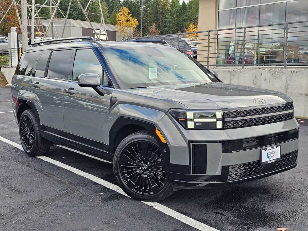 2026 Hyundai Santa Fe Hybrid CalligraphyI4 6-Speed Automatic with Shiftronic AWD 4D Sport Utility Hampton Gray I4, 12 Speakers, 3rd row seats: bench, 4-Wheel Disc Brakes, ABS brakes, Air Conditioning, All Season Fitted Liners, Alloy wheels, AM/FM radio: SiriusXM, Apple CarPlay & Android Auto, Auto High-beam Headlights, Auto-dimming Rear-View mirror, Automatic temperature control, Brake assist, Bumpers: body-color, Cargo Cover/Screen, Cargo Net, Cargo Tray, Carpeted Floor Mats, Delay-off headlights, Driver door bin, Driver vanity mirror, Dual front impact airbags, Dual front side impact airbags, Electronic Stability Control, Emergency communication system, Exterior Parking Camera Rear, First Aid Kit, Four wheel independent suspension, Front anti-roll bar, Front Bucket Seats, Front Center Armrest, Front dual zone A/C, Front reading lights, Fully automatic headlights, Garage door transmitter: HomeLink, Heads-Up Display, Heated and Ventilated Front Bucket Seats, Heated door mirrors, Heated front seats, Heated rear seats, Heated steering wheel, Illuminated entry, Knee airbag, Leather steering wheel, Low tire pressure warning, Memory seat, Navigation System, Occupant sensing airbag, Option Group 01, Outside temperature display, Overhead airbag, Overhead console, Panic alarm, Passenger door bin, Passenger vanity mirror, Power door mirrors, Power driver seat, Power Liftgate, Power moonroof, Power passenger seat, Power steering, Power windows, Quilted Premium Nappa Leather Seat Trim, Radio: AM/FM/HD Bose Premium Audio System, Rain sensing wipers, Rear anti-roll bar, Rear side impact airbag, Rear window defroster, Rear window wiper, Remote keyless entry, Security system, Severe Weather Kit, Speed control, Speed-sensing steering, Split folding rear seat, Spoiler, Steering wheel mounted audio controls, Tachometer, Telescoping steering wheel, Tilt steering wheel, Traction control, Transverse Panel, Trip computer, Turn signal indicator mirrors, Variably intermittent wipers, Ventilated front seats, Wheels: 20" x 8.5J Unique Dark Finish Alloy, I4. Prices good through 5-31-2025. Kirkland Price includes:$4000 - Hyundai HMF Dealer Choice : $4000 discount and 5.39% APR for 24 months. $44.05 per $1000 financed. Available to well qualified buyers who finance through Hyundai Motor Finance. H704.