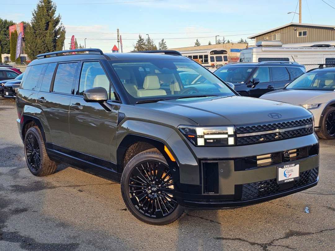 2026 Hyundai Santa Fe Hybrid CalligraphyI4 6-Speed Automatic with Shiftronic AWD 4D Sport Utility Rockwood Green I4, 12 Speakers, 3rd row seats: bench, 4-Wheel Disc Brakes, ABS brakes, Air Conditioning, Alloy wheels, AM/FM radio: SiriusXM, Apple CarPlay & Android Auto, Auto High-beam Headlights, Auto-dimming Rear-View mirror, Automatic temperature control, Brake assist, Bumpers: body-color, Cargo Net, Cargo Tray, Carpeted Floor Mats, Delay-off headlights, Driver door bin, Driver vanity mirror, Dual front impact airbags, Dual front side impact airbags, Electronic Stability Control, Emergency communication system, Exterior Parking Camera Rear, First Aid Kit, Four wheel independent suspension, Front anti-roll bar, Front Bucket Seats, Front Center Armrest, Front dual zone A/C, Front reading lights, Fully automatic headlights, Garage door transmitter: HomeLink, Heads-Up Display, Heated and Ventilated Front Bucket Seats, Heated door mirrors, Heated front seats, Heated rear seats, Heated steering wheel, Illuminated entry, Knee airbag, Leather steering wheel, Low tire pressure warning, Memory seat, Navigation System, Occupant sensing airbag, Option Group 01, Outside temperature display, Overhead airbag, Overhead console, Panic alarm, Passenger door bin, Passenger vanity mirror, Power door mirrors, Power driver seat, Power Liftgate, Power moonroof, Power passenger seat, Power steering, Power windows, Quilted Premium Nappa Leather Seat Trim, Radio: AM/FM/HD Bose Premium Audio System, Rain sensing wipers, Rear anti-roll bar, Rear side impact airbag, Rear window defroster, Rear window wiper, Remote keyless entry, Roof Rack Crossbars, Security system, Speed control, Speed-sensing steering, Split folding rear seat, Spoiler, Steering wheel mounted audio controls, Tachometer, Telescoping steering wheel, Tilt steering wheel, Traction control, Trip computer, Turn signal indicator mirrors, Variably intermittent wipers, Ventilated front seats, Wheels: 20" x 8.5J Unique Dark Finish Alloy, I4. Prices good through 5-31-2025. Kirkland Price includes:$4000 - Hyundai HMF Dealer Choice : $4000 discount and 5.39% APR for 24 months. $44.05 per $1000 financed. Available to well qualified buyers who finance through Hyundai Motor Finance. H704.
