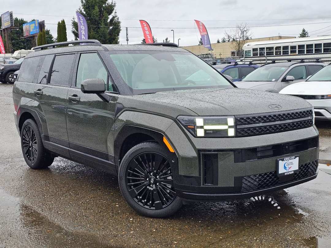 2026 Hyundai Santa Fe Hybrid CalligraphyI4 6-Speed Automatic with Shiftronic AWD 4D Sport Utility Rockwood Green I4, 12 Speakers, 3rd row seats: bench, 4-Wheel Disc Brakes, ABS brakes, Air Conditioning, All Season Fitted Liners, Alloy wheels, AM/FM radio: SiriusXM, Apple CarPlay & Android Auto, Auto High-beam Headlights, Auto-dimming Rear-View mirror, Automatic temperature control, Brake assist, Bumpers: body-color, Cargo Cover/Screen, Cargo Net, Carpeted Floor Mats, Delay-off headlights, Driver door bin, Driver vanity mirror, Dual front impact airbags, Dual front side impact airbags, Electronic Stability Control, Emergency communication system, Exterior Parking Camera Rear, First Aid Kit, Four wheel independent suspension, Front anti-roll bar, Front Bucket Seats, Front Center Armrest, Front dual zone A/C, Front reading lights, Fully automatic headlights, Garage door transmitter: HomeLink, Heads-Up Display, Heated and Ventilated Front Bucket Seats, Heated door mirrors, Heated front seats, Heated rear seats, Heated steering wheel, Illuminated entry, Knee airbag, Leather steering wheel, Low tire pressure warning, Memory seat, Mudguards, Navigation System, Occupant sensing airbag, Option Group 01, Outside temperature display, Overhead airbag, Overhead console, Panic alarm, Passenger door bin, Passenger vanity mirror, Power door mirrors, Power driver seat, Power Liftgate, Power moonroof, Power passenger seat, Power steering, Power windows, Quilted Premium Nappa Leather Seat Trim, Radio: AM/FM/HD Bose Premium Audio System, Rain sensing wipers, Rear anti-roll bar, Rear side impact airbag, Rear window defroster, Rear window wiper, Remote keyless entry, Roadside Assistance Kit, Security system, Speed control, Speed-sensing steering, Split folding rear seat, Spoiler, Steering wheel mounted audio controls, Tachometer, Telescoping steering wheel, Tilt steering wheel, Traction control, Trip computer, Turn signal indicator mirrors, Variably intermittent wipers, Ventilated front seats, Wheels: 20" x 8.5J Unique Dark Finish Alloy, I4. Prices good through 5-31-2025. Kirkland Price includes:$4000 - Hyundai HMF Dealer Choice : $4000 discount and 5.39% APR for 24 months. $44.05 per $1000 financed. Available to well qualified buyers who finance through Hyundai Motor Finance. H704.