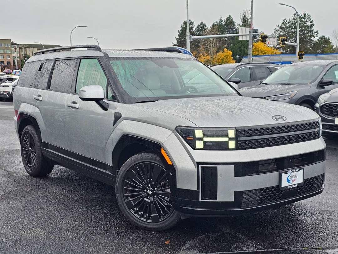 2026 Hyundai Santa Fe Hybrid CalligraphyI4 6-Speed Automatic with Shiftronic AWD 4D Sport Utility Shimmering Silver I4, 12 Speakers, 3rd row seats: bench, 4-Wheel Disc Brakes, ABS brakes, Air Conditioning, Alloy wheels, AM/FM radio: SiriusXM, Apple CarPlay & Android Auto, Auto High-beam Headlights, Auto-dimming Rear-View mirror, Automatic temperature control, Brake assist, Bumpers: body-color, Cargo Net, Cargo Tray, Carpeted Floor Mats, Delay-off headlights, Driver door bin, Driver vanity mirror, Dual front impact airbags, Dual front side impact airbags, Electronic Stability Control, Emergency communication system, Exterior Parking Camera Rear, First Aid Kit, Four wheel independent suspension, Front anti-roll bar, Front Bucket Seats, Front Center Armrest, Front dual zone A/C, Front reading lights, Fully automatic headlights, Garage door transmitter: HomeLink, Heads-Up Display, Heated and Ventilated Front Bucket Seats, Heated door mirrors, Heated front seats, Heated rear seats, Heated steering wheel, Illuminated entry, Knee airbag, Leather steering wheel, Low tire pressure warning, Memory seat, Mudguards, Navigation System, Occupant sensing airbag, Option Group 01, Outside temperature display, Overhead airbag, Overhead console, Panic alarm, Passenger door bin, Passenger vanity mirror, Power door mirrors, Power driver seat, Power Liftgate, Power moonroof, Power passenger seat, Power steering, Power windows, Quilted Premium Nappa Leather Seat Trim, Radio: AM/FM/HD Bose Premium Audio System, Rain sensing wipers, Rear anti-roll bar, Rear side impact airbag, Rear window defroster, Rear window wiper, Remote keyless entry, Roadside Assistance Kit, Roof Rack Crossbars, Security system, Speed control, Speed-sensing steering, Split folding rear seat, Spoiler, Steering wheel mounted audio controls, Tachometer, Telescoping steering wheel, Tilt steering wheel, Traction control, Trip computer, Turn signal indicator mirrors, Variably intermittent wipers, Ventilated front seats, Wheels: 20" x 8.5J Unique Dark Finish Alloy, I4. Prices good through 5-31-2025. Kirkland Price includes:$2000 - Retail Bonus Cash