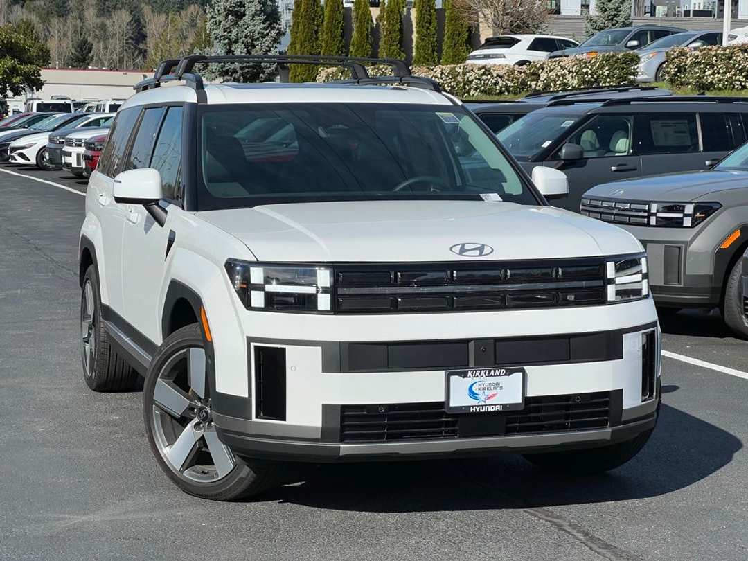 2026 Hyundai Santa Fe Hybrid LimitedI4 6-Speed Automatic with Shiftronic AWD 4D Sport Utility Serenity White I4, 12 Speakers, 3rd row seats: bench, 4-Wheel Disc Brakes, ABS brakes, Air Conditioning, Alloy wheels, AM/FM radio: SiriusXM, Apple CarPlay & Android Auto, Auto High-beam Headlights, Auto-dimming Rear-View mirror, Automatic temperature control, Brake assist, Bumpers: body-color, Cargo Blocks, Cargo Net, Cargo Tray, Carpeted Floor Mats, Delay-off headlights, Driver door bin, Driver vanity mirror, Dual front impact airbags, Dual front side impact airbags, Electronic Stability Control, Emergency communication system, Exterior Parking Camera Rear, First Aid Kit, Four wheel independent suspension, Front anti-roll bar, Front Bucket Seats, Front Center Armrest, Front dual zone A/C, Front reading lights, Fully automatic headlights, Garage door transmitter: HomeLink, Heated and Ventilated Front Bucket Seats, Heated door mirrors, Heated front seats, Heated rear seats, Heated steering wheel, Illuminated entry, Knee airbag, Leather Seat Trim, Leather steering wheel, Low tire pressure warning, Memory seat, Mudguards, Navigation System, Occupant sensing airbag, Option Group 01, Outside temperature display, Overhead airbag, Overhead console, Panic alarm, Passenger door bin, Passenger vanity mirror, Power door mirrors, Power driver seat, Power Liftgate, Power moonroof, Power passenger seat, Power steering, Power windows, Radio: AM/FM/HD Bose Premium Audio System, Rain sensing wipers, Rear anti-roll bar, Rear side impact airbag, Rear window defroster, Rear window wiper, Remote keyless entry, Roof Rack Crossbars, Security system, Speed control, Speed-sensing steering, Split folding rear seat, Spoiler, Steering wheel mounted audio controls, Tachometer, Telescoping steering wheel, Tilt steering wheel, Traction control, Trip computer, Turn signal indicator mirrors, Variably intermittent wipers, Ventilated front seats, Wheels: 20" x 8.5J Alloy, I4. Prices good through 5-31-2025. Kirkland Price includes:$4000 - Hyundai HMF Dealer Choice : $4000 discount and 5.39% APR for 24 months. $44.05 per $1000 financed. Available to well qualified buyers who finance through Hyundai Motor Finance. H704.