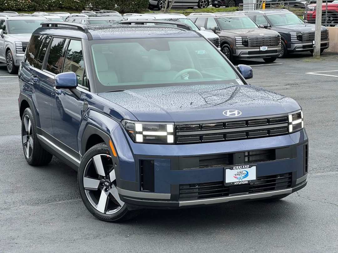 2026 Hyundai Santa Fe Limited2.5L I4 8-Speed Automatic with SHIFTRONIC AWD 4D Sport Utility Atlantis Blue AWD, Gray Leather, 12 Speakers, 3rd row seats: bench, 4-Wheel Disc Brakes, ABS brakes, Air Conditioning, Alloy wheels, AM/FM radio: SiriusXM, Apple CarPlay & Android Auto, Auto High-beam Headlights, Auto-dimming Rear-View mirror, Automatic temperature control, Brake assist, Bumpers: body-color, Cargo Cover/Screen, Cargo Net, Cargo Tray, Carpeted Floor Mats, Delay-off headlights, Driver door bin, Driver vanity mirror, Dual front impact airbags, Dual front side impact airbags, Electronic Stability Control, Emergency communication system, Exterior Parking Camera Rear, First Aid Kit, Four wheel independent suspension, Front anti-roll bar, Front Bucket Seats, Front Center Armrest, Front dual zone A/C, Front reading lights, Fully automatic headlights, Garage door transmitter: HomeLink, Heated and Ventilated Front Bucket Seats, Heated door mirrors, Heated front seats, Heated rear seats, Heated steering wheel, Illuminated entry, Knee airbag, Leather Seat Trim, Leather steering wheel, Low tire pressure warning, Memory seat, Mudguards, Navigation System, Occupant sensing airbag, Outside temperature display, Overhead airbag, Overhead console, Panic alarm, Passenger door bin, Passenger vanity mirror, Power door mirrors, Power driver seat, Power Liftgate, Power moonroof, Power passenger seat, Power steering, Power windows, Radio: AM/FM/HD Bose Premium Audio System, Rain sensing wipers, Rear anti-roll bar, Rear side impact airbag, Rear window defroster, Rear window wiper, Remote keyless entry, Security system, Speed control, Speed-sensing steering, Split folding rear seat, Spoiler, Steering wheel mounted audio controls, Tachometer, Telescoping steering wheel, Tilt steering wheel, Traction control, Trip computer, Turn signal indicator mirrors, Variably intermittent wipers, Ventilated front seats, Wheels: 20" x 8.5J Alloy, AWD, Gray Leather. Prices good through 5-31-2025. Kirkland Price includes:$3500 - Hyundai HMF Dealer Choice : $3500 discount and 5.39% APR for 24 months. $44.05 per $1000 financed. Available to well qualified buyers who finance through Hyundai Motor Finance. H704.