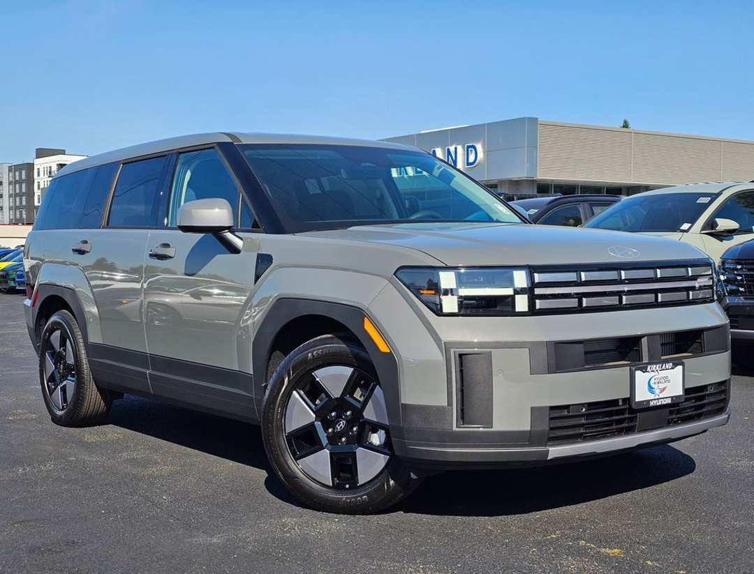 2026 Hyundai Santa Fe Hybrid SEI4 6-Speed Automatic with Shiftronic AWD 4D Sport Utility Hampton Gray I4, 18" x 7.5J Alloy Wheels, 3rd row seats: bench, 4-Wheel Disc Brakes, 6 Speakers, ABS brakes, Air Conditioning, Alloy wheels, AM/FM radio: SiriusXM, Apple CarPlay & Android Auto, Auto High-beam Headlights, Automatic temperature control, Brake assist, Bumpers: body-color, Cargo Blocks, Cargo Net, Cargo Organizer, Cargo Tray, Carpeted Floor Mats, Delay-off headlights, Driver door bin, Driver vanity mirror, Dual front impact airbags, Dual front side impact airbags, Electronic Stability Control, Emergency communication system, Exterior Parking Camera Rear, First Aid Kit, Four wheel independent suspension, Front anti-roll bar, Front Bucket Seats, Front Center Armrest, Front dual zone A/C, Front reading lights, Fully automatic headlights, Heated door mirrors, Illuminated entry, Knee airbag, Leather steering wheel, Low tire pressure warning, Mudguards, Occupant sensing airbag, Option Group 01, Outside temperature display, Overhead airbag, Overhead console, Panic alarm, Passenger door bin, Passenger vanity mirror, Power door mirrors, Power Liftgate, Power steering, Power windows, Radio: AM/FM/HD Display Audio, Rear anti-roll bar, Rear seat center armrest, Rear side impact airbag, Rear window defroster, Rear window wiper, Remote keyless entry, Security system, Speed control, Speed-sensing steering, Split folding rear seat, Spoiler, Steering wheel mounted audio controls, Tachometer, Telescoping steering wheel, Tilt steering wheel, Traction control, Trip computer, Variably intermittent wipers, YES Essentials Stain-Resistant Cloth Seat Trim, I4. Prices good through 5-31-2025. Kirkland Price includes:$4000 - Hyundai HMF Dealer Choice : $4000 discount and 5.39% APR for 24 months. $44.05 per $1000 financed. Available to well qualified buyers who finance through Hyundai Motor Finance. H704.