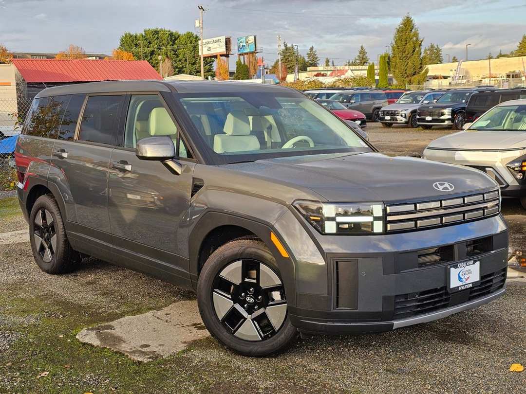 2026 Hyundai Santa Fe Hybrid SEI4 6-Speed Automatic with Shiftronic AWD 4D Sport Utility Ecotronic Gray I4, 18" x 7.5J Alloy Wheels, 3rd row seats: bench, 4-Wheel Disc Brakes, 6 Speakers, ABS brakes, Air Conditioning, Alloy wheels, AM/FM radio: SiriusXM, Apple CarPlay & Android Auto, Auto High-beam Headlights, Automatic temperature control, Brake assist, Bumpers: body-color, Cargo Net, Cargo Tray, Carpeted Floor Mats, Delay-off headlights, Driver door bin, Driver vanity mirror, Dual front impact airbags, Dual front side impact airbags, Electronic Stability Control, Emergency communication system, Exterior Parking Camera Rear, First Aid Kit, Four wheel independent suspension, Front anti-roll bar, Front Bucket Seats, Front Center Armrest, Front dual zone A/C, Front reading lights, Fully automatic headlights, Heated door mirrors, Illuminated entry, Knee airbag, Leather steering wheel, Low tire pressure warning, Occupant sensing airbag, Option Group 01, Outside temperature display, Overhead airbag, Overhead console, Panic alarm, Passenger door bin, Passenger vanity mirror, Power door mirrors, Power Liftgate, Power steering, Power windows, Radio: AM/FM/HD Display Audio, Rear anti-roll bar, Rear seat center armrest, Rear side impact airbag, Rear window defroster, Rear window wiper, Remote keyless entry, Security system, Speed control, Speed-sensing steering, Split folding rear seat, Spoiler, Steering wheel mounted audio controls, Tachometer, Telescoping steering wheel, Tilt steering wheel, Tow Hitch, Traction control, Trip computer, Variably intermittent wipers, YES Essentials Stain-Resistant Cloth Seat Trim, I4. Prices good through 5-31-2025. Kirkland Price includes:$2000 - Retail Bonus Cash