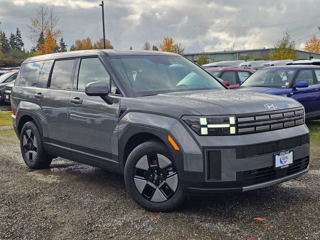 2026 Hyundai Santa Fe Hybrid SEI4 6-Speed Automatic with Shiftronic AWD 4D Sport Utility Hampton Gray I4, 18" x 7.5J Alloy Wheels, 3rd row seats: bench, 4-Wheel Disc Brakes, 6 Speakers, ABS brakes, Air Conditioning, All Season Fitted Liners, Alloy wheels, AM/FM radio: SiriusXM, Apple CarPlay & Android Auto, Auto High-beam Headlights, Automatic temperature control, Brake assist, Bumpers: body-color, Cargo Blocks, Cargo Net, Cargo Organizer, Carpeted Floor Mats, Delay-off headlights, Driver door bin, Driver vanity mirror, Dual front impact airbags, Dual front side impact airbags, Electronic Stability Control, Emergency communication system, Exterior Parking Camera Rear, First Aid Kit, Four wheel independent suspension, Front anti-roll bar, Front Bucket Seats, Front Center Armrest, Front dual zone A/C, Front reading lights, Fully automatic headlights, Heated door mirrors, Illuminated entry, Knee airbag, Leather steering wheel, Low tire pressure warning, Occupant sensing airbag, Option Group 01, Outside temperature display, Overhead airbag, Overhead console, Panic alarm, Passenger door bin, Passenger vanity mirror, Power door mirrors, Power Liftgate, Power steering, Power windows, Radio: AM/FM/HD Display Audio, Rear anti-roll bar, Rear seat center armrest, Rear side impact airbag, Rear window defroster, Rear window wiper, Remote keyless entry, Roadside Assistance Kit, Security system, Speed control, Speed-sensing steering, Split folding rear seat, Spoiler, Steering wheel mounted audio controls, Tachometer, Telescoping steering wheel, Tilt steering wheel, Traction control, Trip computer, Variably intermittent wipers, YES Essentials Stain-Resistant Cloth Seat Trim, I4. Prices good through 5-31-2025. Kirkland Price includes:$2000 - Retail Bonus Cash