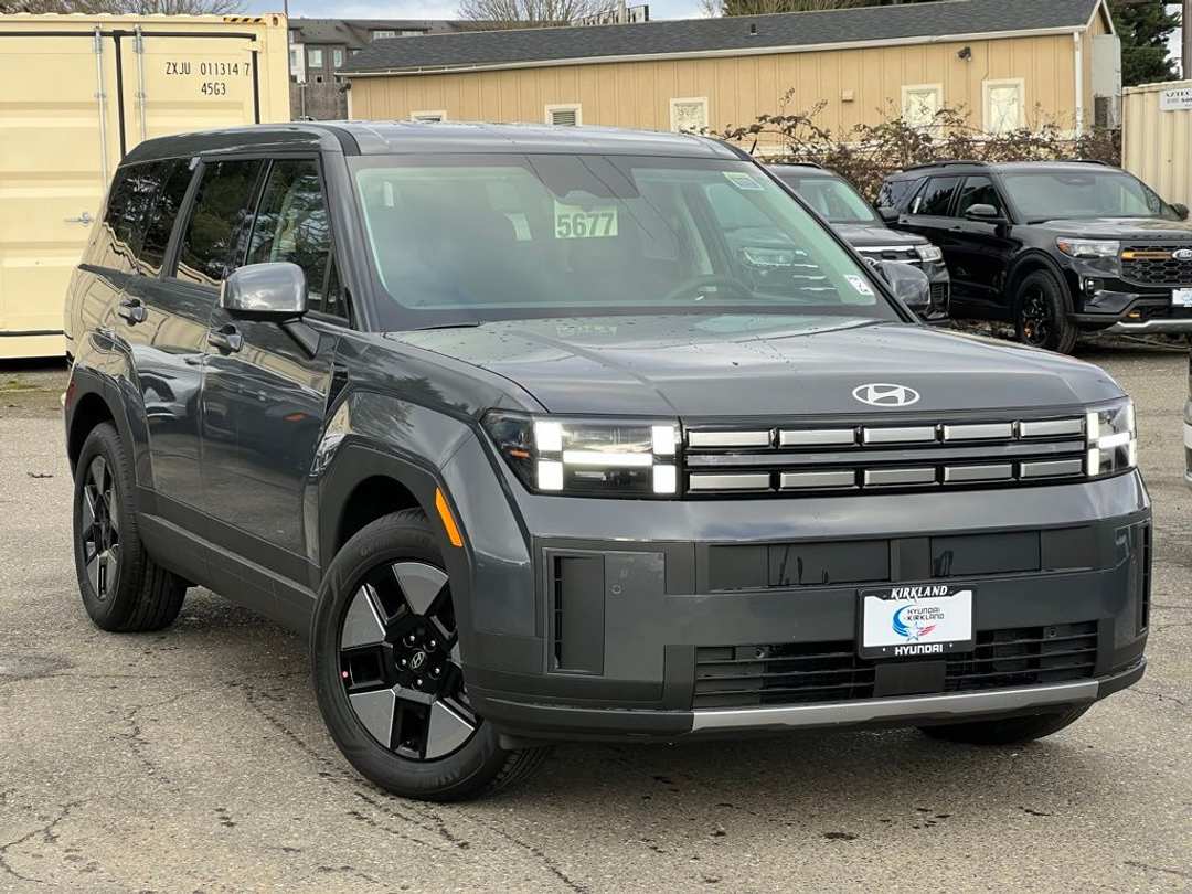 2026 Hyundai Santa Fe Hybrid SEI4 6-Speed Automatic with Shiftronic AWD 4D Sport Utility Ecotronic Gray I4, 18" x 7.5J Alloy Wheels, 3rd row seats: bench, 4-Wheel Disc Brakes, 6 Speakers, ABS brakes, Air Conditioning, Alloy wheels, AM/FM radio: SiriusXM, Apple CarPlay & Android Auto, Auto High-beam Headlights, Automatic temperature control, Brake assist, Bumpers: body-color, Cargo Cover/Screen, Cargo Net, Cargo Tray, Carpeted Floor Mats, Delay-off headlights, Driver door bin, Driver vanity mirror, Dual front impact airbags, Dual front side impact airbags, Electronic Stability Control, Emergency communication system, Exterior Parking Camera Rear, First Aid Kit, Four wheel independent suspension, Front anti-roll bar, Front Bucket Seats, Front Center Armrest, Front dual zone A/C, Front reading lights, Fully automatic headlights, Heated door mirrors, Illuminated entry, Knee airbag, Leather steering wheel, Low tire pressure warning, Occupant sensing airbag, Option Group 01, Outside temperature display, Overhead airbag, Overhead console, Panic alarm, Passenger door bin, Passenger vanity mirror, Power door mirrors, Power Liftgate, Power steering, Power windows, Radio: AM/FM/HD Display Audio, Rear anti-roll bar, Rear seat center armrest, Rear side impact airbag, Rear window defroster, Rear window wiper, Remote keyless entry, Roadside Assistance Kit, Security system, Speed control, Speed-sensing steering, Split folding rear seat, Spoiler, Steering wheel mounted audio controls, Tachometer, Telescoping steering wheel, Tilt steering wheel, Traction control, Trip computer, Variably intermittent wipers, YES Essentials Stain-Resistant Cloth Seat Trim, I4. Prices good through 5-31-2025. Kirkland Price includes:$2000 - Retail Bonus Cash