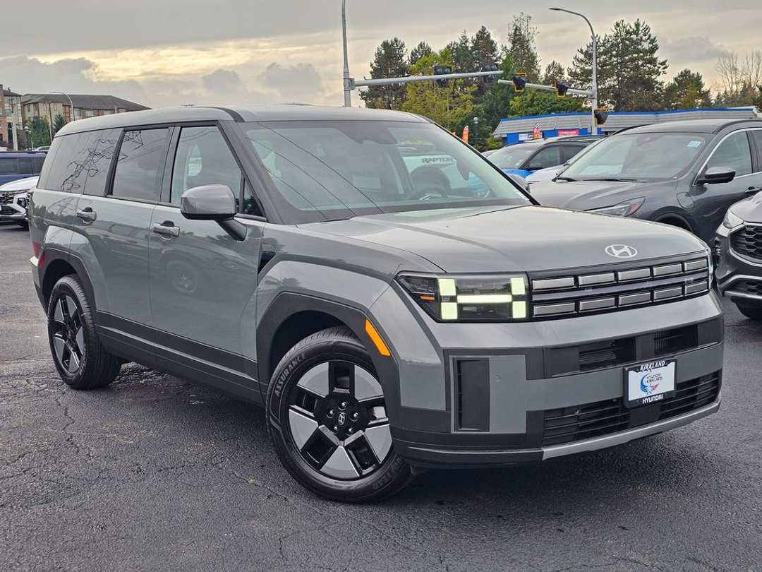 2026 Hyundai Santa Fe Hybrid SEI4 6-Speed Automatic with Shiftronic AWD 4D Sport Utility Hampton Gray I4, 18" x 7.5J Alloy Wheels, 3rd row seats: bench, 4-Wheel Disc Brakes, 6 Speakers, ABS brakes, Air Conditioning, All Season Fitted Liners, Alloy wheels, AM/FM radio: SiriusXM, Apple CarPlay & Android Auto, Auto High-beam Headlights, Automatic temperature control, Brake assist, Bumpers: body-color, Cargo Blocks, Cargo Net, Cargo Tray, Carpeted Floor Mats, Delay-off headlights, Driver door bin, Driver vanity mirror, Dual front impact airbags, Dual front side impact airbags, Electronic Stability Control, Emergency communication system, Exterior Parking Camera Rear, First Aid Kit, Four wheel independent suspension, Front anti-roll bar, Front Bucket Seats, Front Center Armrest, Front dual zone A/C, Front reading lights, Fully automatic headlights, Heated door mirrors, Illuminated entry, Knee airbag, Leather steering wheel, Low tire pressure warning, Occupant sensing airbag, Option Group 01, Outside temperature display, Overhead airbag, Overhead console, Panic alarm, Passenger door bin, Passenger vanity mirror, Power door mirrors, Power Liftgate, Power steering, Power windows, Radio: AM/FM/HD Display Audio, Rear anti-roll bar, Rear seat center armrest, Rear side impact airbag, Rear window defroster, Rear window wiper, Remote keyless entry, Security system, Speed control, Speed-sensing steering, Split folding rear seat, Spoiler, Steering wheel mounted audio controls, Tachometer, Telescoping steering wheel, Tilt steering wheel, Traction control, Trip computer, Variably intermittent wipers, YES Essentials Stain-Resistant Cloth Seat Trim, I4. Prices good through 5-31-2025. Kirkland Price includes:$2000 - Retail Bonus Cash