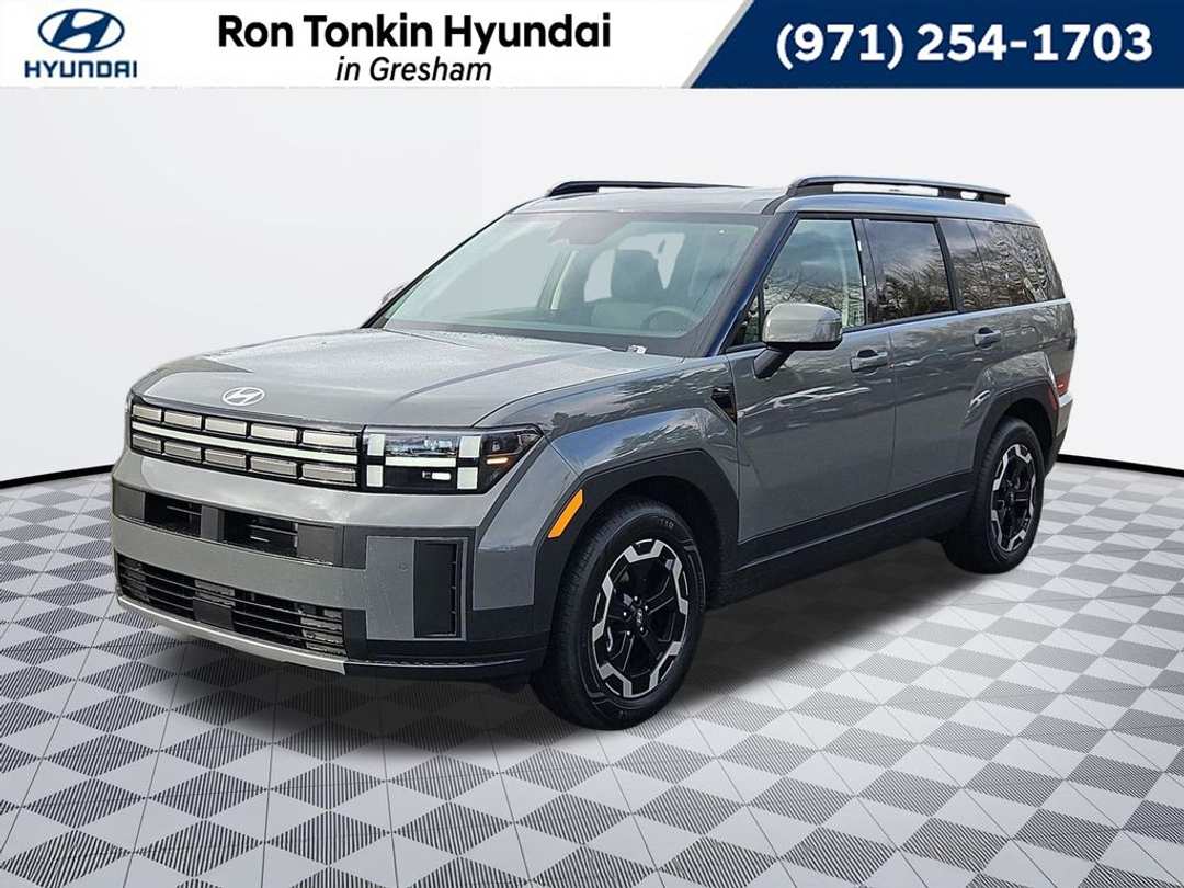 2026 Hyundai Santa Fe SEL 2.5L I4 8-Speed Automatic with SHIFTRONIC AWD 4D Sport Utility Hampton Gray AWD, Black Premium Synthetic, 18" x 7.5J Alloy Wheels, 3rd row seats: bench, 4-Wheel Disc Brakes, 6 Speakers, ABS brakes, Air Conditioning, Alloy wheels, AM/FM radio: SiriusXM, Apple CarPlay & Android Auto, Auto High-beam Headlights, Automatic temperature control, Brake assist, Bumpers: body-color, Cargo Cover/Screen, Cargo Net, Cargo Organizer, Cargo Tray, Carpeted Floor Mats, Delay-off headlights, Driver door bin, Driver vanity mirror, Dual front impact airbags, Dual front side impact airbags, Electronic Stability Control, Emergency communication system, Exterior Parking Camera Rear, First Aid Kit, Four wheel independent suspension, Front anti-roll bar, Front Bucket Seats, Front Center Armrest, Front dual zone A/C, Front reading lights, Fully automatic headlights, H-Tex Leatherette Seat Trim, Heated door mirrors, Heated Front Bucket Seats, Heated front seats, Illuminated entry, Knee airbag, Leather steering wheel, Low tire pressure warning, Occupant sensing airbag, Option Group 01, Outside temperature display, Overhead airbag, Overhead console, Panic alarm, Passenger door bin, Passenger vanity mirror, Power door mirrors, Power driver seat, Power Liftgate, Power steering, Power windows, Radio: AM/FM/HD Display Audio, Rear anti-roll bar, Rear seat center armrest, Rear side impact airbag, Rear window defroster, Rear window wiper, Remote keyless entry, Security system, Severe Weather Kit, Speed control, Speed-sensing steering, Split folding rear seat, Spoiler, Steering wheel mounted audio controls, Tachometer, Telescoping steering wheel, Tilt steering wheel, Traction control, Trip computer, Turn signal indicator mirrors, Variably intermittent wipers, AWD, Black Premium Synthetic. Call for availability. Come in to Ron Tonkin Gresham Hyundai to test drive today! DA2028 View our entire inventory at https://www.rontonkinhyundai.com/ Pricing includes all applicable factory rebates, and discounts, buyer must finance through HMFA on approved credit. Price excludes tax, title, license, doc fee and dealer added accessories. Price includes: $3500 - Hyundai HMF Dealer Choice : $3500 discount and 5.39% APR for 24 months. $44.05 per $1000 financed. Available to well qualified buyers who finance through Hyundai Motor Finance. H704. Exp. 03/31/2026