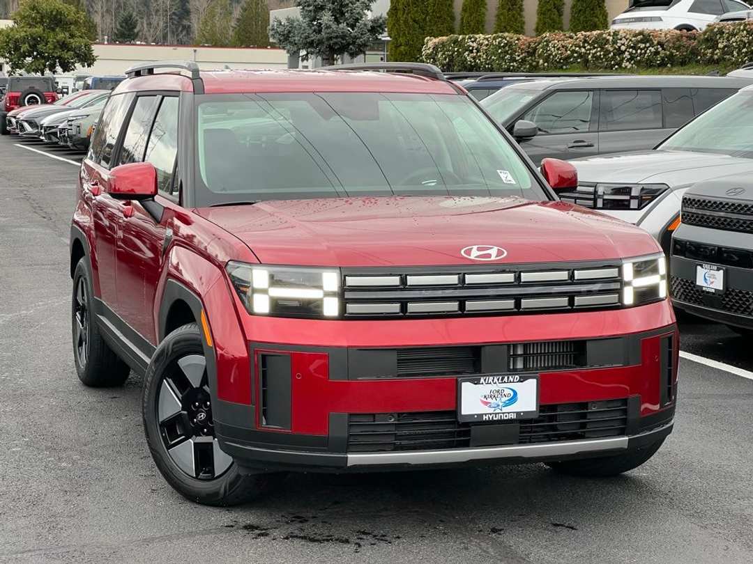2026 Hyundai Santa Fe Hybrid SELI4 6-Speed Automatic with Shiftronic AWD 4D Sport Utility Ultimate Red I4, 18" x 7.5J Alloy Wheels, 3rd row seats: bench, 4-Wheel Disc Brakes, 6 Speakers, ABS brakes, Air Conditioning, Alloy wheels, AM/FM radio: SiriusXM, Apple CarPlay & Android Auto, Auto High-beam Headlights, Automatic temperature control, Brake assist, Bumpers: body-color, Cargo Cover/Screen, Cargo Net, Cargo Tray, Carpeted Floor Mats, Delay-off headlights, Driver door bin, Driver vanity mirror, Dual front impact airbags, Dual front side impact airbags, Electronic Stability Control, Emergency communication system, Exterior Parking Camera Rear, First Aid Kit, Four wheel independent suspension, Front anti-roll bar, Front Bucket Seats, Front Center Armrest, Front dual zone A/C, Front reading lights, Fully automatic headlights, H-Tex Leatherette Seat Trim, Heated door mirrors, Heated Front Bucket Seats, Heated front seats, Illuminated entry, Knee airbag, Leather steering wheel, Low tire pressure warning, Mudguards, Occupant sensing airbag, Option Group 01, Outside temperature display, Overhead airbag, Overhead console, Panic alarm, Passenger door bin, Passenger vanity mirror, Power door mirrors, Power driver seat, Power Liftgate, Power steering, Power windows, Radio: AM/FM/HD Display Audio, Rear anti-roll bar, Rear seat center armrest, Rear side impact airbag, Rear window defroster, Rear window wiper, Remote keyless entry, Roadside Assistance Kit, Security system, Speed control, Speed-sensing steering, Split folding rear seat, Spoiler, Steering wheel mounted audio controls, Tachometer, Telescoping steering wheel, Tilt steering wheel, Traction control, Trip computer, Turn signal indicator mirrors, Variably intermittent wipers, I4. Prices good through 5-31-2025. Kirkland Price includes:$4000 - Hyundai HMF Dealer Choice : $4000 discount and 5.39% APR for 24 months. $44.05 per $1000 financed. Available to well qualified buyers who finance through Hyundai Motor Finance. H704.
