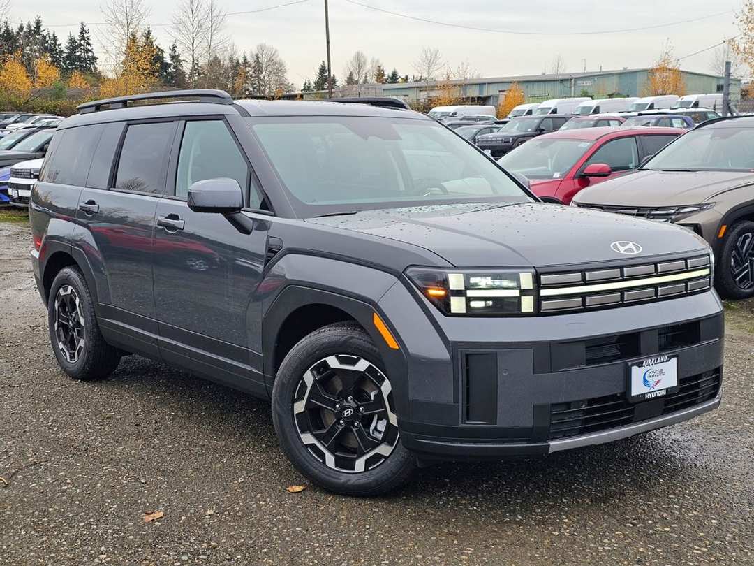 2026 Hyundai Santa Fe SEL2.5L I4 8-Speed Automatic with SHIFTRONIC AWD 4D Sport Utility Ecotronic Gray AWD, Black Premium Synthetic, 18" x 7.5J Alloy Wheels, 3rd row seats: bench, 4-Wheel Disc Brakes, 6 Speakers, ABS brakes, Air Conditioning, All Season Fitted Liners, Alloy wheels, AM/FM radio: SiriusXM, Apple CarPlay & Android Auto, Auto High-beam Headlights, Automatic temperature control, Brake assist, Bumpers: body-color, Cargo Cover/Screen, Cargo Net, Carpeted Floor Mats, Delay-off headlights, Driver door bin, Driver vanity mirror, Dual front impact airbags, Dual front side impact airbags, Electronic Stability Control, Emergency communication system, Exterior Parking Camera Rear, First Aid Kit, Four wheel independent suspension, Front anti-roll bar, Front Bucket Seats, Front Center Armrest, Front dual zone A/C, Front reading lights, Fully automatic headlights, H-Tex Leatherette Seat Trim, Heated door mirrors, Heated Front Bucket Seats, Heated front seats, Illuminated entry, Knee airbag, Leather steering wheel, Low tire pressure warning, Occupant sensing airbag, Option Group 01, Outside temperature display, Overhead airbag, Overhead console, Panic alarm, Passenger door bin, Passenger vanity mirror, Power door mirrors, Power driver seat, Power Liftgate, Power steering, Power windows, Radio: AM/FM/HD Display Audio, Rear anti-roll bar, Rear seat center armrest, Rear side impact airbag, Rear window defroster, Rear window wiper, Remote keyless entry, Security system, Speed control, Speed-sensing steering, Split folding rear seat, Spoiler, Steering wheel mounted audio controls, Tachometer, Telescoping steering wheel, Tilt steering wheel, Traction control, Trip computer, Turn signal indicator mirrors, Variably intermittent wipers, AWD, Black Premium Synthetic.
