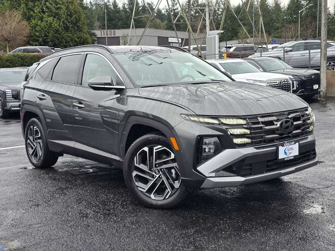 2026 Hyundai Tucson Hybrid Limited1.6L I4 DGI Hybrid Turbocharged DOHC 16V LEV3-SULEV30 6-Speed Automatic AWD 4D Sport Utility Amazon Gray 1.6L I4 DGI Hybrid Turbocharged DOHC 16V LEV3-SULEV30, 4-Wheel Disc Brakes, 8 Speakers, ABS brakes, Air Conditioning, All Season Fitted Liners, Alloy wheels, AM/FM radio: SiriusXM, Apple CarPlay & Android Auto, Auto High-beam Headlights, Auto-dimming Rear-View mirror, Automatic temperature control, Brake assist, Bumpers: body-color, Cargo Net, Cargo Tray, Carpeted Floor Mats, Delay-off headlights, Driver door bin, Driver vanity mirror, Dual front impact airbags, Dual front side impact airbags, Electronic Stability Control, Emergency communication system: None, First Aid Kit, Four wheel independent suspension, Front anti-roll bar, Front Bucket Seats, Front Center Armrest, Front dual zone A/C, Front reading lights, Fully automatic headlights, Garage door transmitter: HomeLink, Heads-Up Display, Heated and Ventilated Front Bucket Seats, Heated door mirrors, Heated front seats, Heated rear seats, Heated steering wheel, Illuminated entry, Leather steering wheel, Leather-Trimmed Seat Trim, Low tire pressure warning, Memory seat, Navigation System, Occupant sensing airbag, Option Group 01, Outside temperature display, Overhead airbag, Overhead console, Panic alarm, Passenger door bin, Passenger vanity mirror, Power door mirrors, Power driver seat, Power Liftgate, Power moonroof, Power passenger seat, Power steering, Power windows, Radio data system, Radio: Bose Premium w/AM/FM/HD Audio System, Rain sensing wipers, Rear anti-roll bar, Rear reading lights, Rear seat center armrest, Rear side impact airbag, Rear window defroster, Rear window wiper, Remote keyless entry, Security system, Speed control, Split folding rear seat, Spoiler, Steering wheel mounted audio controls, Tachometer, Telescoping steering wheel, Tilt steering wheel, Traction control, Trip computer, Turn signal indicator mirrors, Variably intermittent wipers, Ventilated front seats, Wheels: 19" x 7.5J Alloy, 1.6L I4 DGI Hybrid Turbocharged DOHC 16V LEV3-SULEV30. Prices good through 5-31-2025. Kirkland Price includes:$2750 - Hyundai HMF Dealer Choice : $2750 discount and 5.39% APR for 24 months. $44.05 per $1000 financed. Available to well qualified buyers who finance through Hyundai Motor Finance. H704.