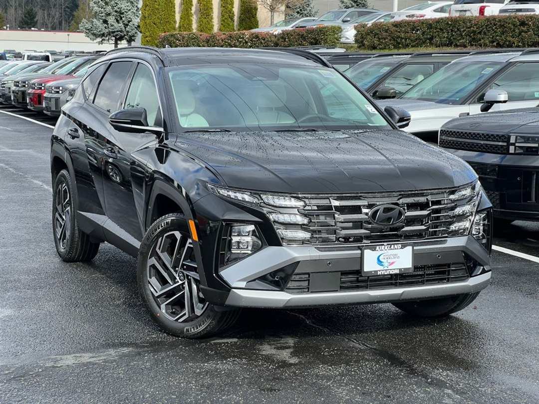 2026 Hyundai Tucson Hybrid Limited1.6L I4 DGI Hybrid Turbocharged DOHC 16V LEV3-SULEV30 6-Speed Automatic AWD 4D Sport Utility Ash Black 1.6L I4 DGI Hybrid Turbocharged DOHC 16V LEV3-SULEV30, 4-Wheel Disc Brakes, 8 Speakers, ABS brakes, Air Conditioning, Alloy wheels, AM/FM radio: SiriusXM, Apple CarPlay & Android Auto, Auto High-beam Headlights, Auto-dimming Rear-View mirror, Automatic temperature control, Brake assist, Bumpers: body-color, Cargo Blocks, Cargo Net, Cargo Tray, Carpeted Floor Mats, Delay-off headlights, Driver door bin, Driver vanity mirror, Dual front impact airbags, Dual front side impact airbags, Electronic Stability Control, Emergency communication system: None, First Aid Kit, Four wheel independent suspension, Front and Rear Mudguards, Front anti-roll bar, Front Bucket Seats, Front Center Armrest, Front dual zone A/C, Front reading lights, Fully automatic headlights, Garage door transmitter: HomeLink, Heads-Up Display, Heated and Ventilated Front Bucket Seats, Heated door mirrors, Heated front seats, Heated rear seats, Heated steering wheel, Illuminated entry, Leather steering wheel, Leather-Trimmed Seat Trim, Low tire pressure warning, Memory seat, Navigation System, Occupant sensing airbag, Option Group 01, Outside temperature display, Overhead airbag, Overhead console, Panic alarm, Passenger door bin, Passenger vanity mirror, Power door mirrors, Power driver seat, Power Liftgate, Power moonroof, Power passenger seat, Power steering, Power windows, Radio data system, Radio: Bose Premium w/AM/FM/HD Audio System, Rain sensing wipers, Rear anti-roll bar, Rear reading lights, Rear seat center armrest, Rear side impact airbag, Rear window defroster, Rear window wiper, Remote keyless entry, Roadside Assistance Kit, Security system, Speed control, Split folding rear seat, Spoiler, Steering wheel mounted audio controls, Tachometer, Telescoping steering wheel, Tilt steering wheel, Traction control, Trip computer, Turn signal indicator mirrors, Variably intermittent wipers, Ventilated front seats, Wheels: 19" x 7.5J Alloy, 1.6L I4 DGI Hybrid Turbocharged DOHC 16V LEV3-SULEV30. Prices good through 5-31-2025. Kirkland Price includes:$3250 - Hyundai HMF Dealer Choice : $3250 discount and 5.39% APR for 24 months. $44.05 per $1000 financed. Available to well qualified buyers who finance through Hyundai Motor Finance. H704.