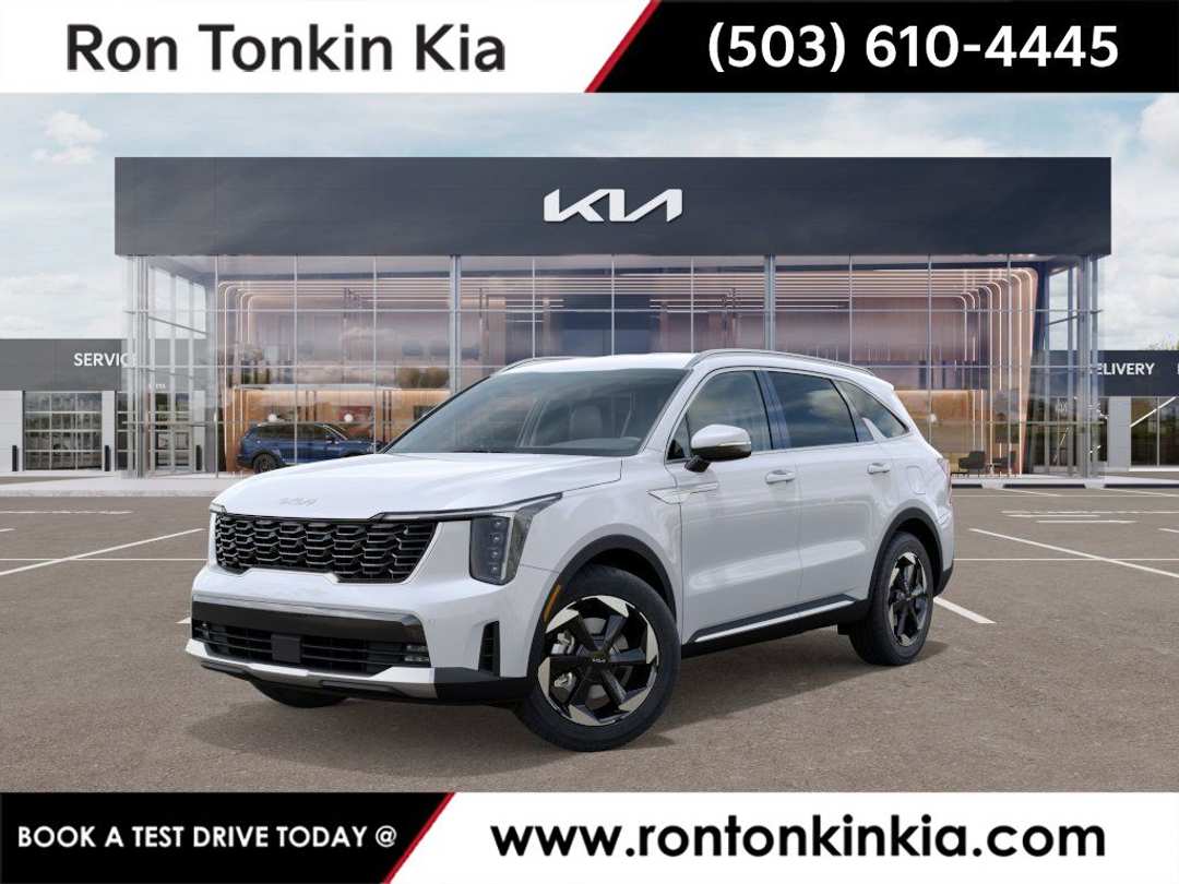 2026 Kia Sorento Hybrid EX Snow White Pearl 4D Sport Utility 1.6L Turbo GDI 4-Cylinder 6-Speed Automatic AWD Backup Camera, Bluetooth, Navigation System, 3rd row seats: split-bench, 4-Wheel Disc Brakes, 6 Speakers, ABS brakes, Air Conditioning, All Weather Floor Mats, Alloy wheels, AM/FM radio: SiriusXM, Apple CarPlay & Android Auto, Auto High-beam Headlights, Auto-dimming Rear-View mirror, Automatic temperature control, Brake assist, Bumpers: body-color, Cargo Cover, Delay-off headlights, Driver door bin, Driver vanity mirror, Dual front impact airbags, Dual front side impact airbags, Electronic Stability Control, Emergency communication system: 911 Connect, Exterior Parking Camera Rear, Four wheel independent suspension, Front anti-roll bar, Front Bucket Seats, Front Center Armrest, Front dual zone A/C, Front fog lights, Front reading lights, Fully automatic headlights, Heated door mirrors, Heated Front Bucket Seats, Heated front seats, Illuminated entry, Knee airbag, Leather steering wheel, Low tire pressure warning, Occupant sensing airbag, Outside temperature display, Overhead airbag, Overhead console, Panic alarm, Passenger door bin, Passenger vanity mirror, Power door mirrors, Power driver seat, Power Liftgate, Power passenger seat, Power steering, Power windows, Radio data system, Radio: AM/FM/SiriusXM Audio System, Rear anti-roll bar, Rear reading lights, Rear seat center armrest, Rear side impact airbag, Rear window defroster, Rear window wiper, Remote keyless entry, Security system, Speed control, Speed-sensing steering, Split folding rear seat, Spoiler, Steering wheel mounted audio controls, SynTex Artificial Leather Seat Trim, Tachometer, Telescoping steering wheel, Tilt steering wheel, Traction control, Trip computer, Turn signal indicator mirrors, Variably intermittent wipers, Navigation System.32/35 City/Highway MPGCome See us today and Drive! RON TONKIN KIA 19335 SE MCLOUGHLIN BLVD GLADSTONE, OR 97027.