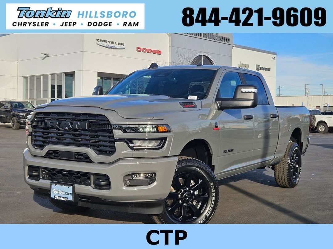 2026 Ram 2500 Big Horn Ceramic Gray Clearcoat 6.7L I6 4WD 8-Speed Automatic12" Touchscreen Display, 2 Way Rear Headrest Seat, 2nd Row in Floor Storage Bins, 4 Way Front Headrests, 4-Wheel Disc Brakes, 40/20/40 Split Bench Seat, 4G LTE Wi-Fi Hot Spot, 6 Speakers, 9 Alpine Speakers with Subwoofer, ABS brakes, Air Conditioning, Air Conditioning ATC with Dual Zone Control, Alexa Built-in, Alloy wheels, AM/FM radio: SiriusXM, Anti-Spin Differential Rear Axle, Apple CarPlay, Apple CarPlay/Android Auto, Auto Power-Folding Mirrors, Auto-Dimming Rear-View Mirror, Big Horn Level 1 Plus Equipment Group, Black Exterior Mirrors, Black Exterior Truck Badging, Black Interior Accents, Black Wheel Center Hub, Body Color Grille-Surround, Brake assist, Bumpers: chrome, Center Hub, Cloth 40/20/40 Bench Seat, Compass, Connected Travel and Traffic Services, Connectivity - US/Canada, Delay-off headlights, Disassociated Touchscreen Display, Driver door bin, Dual front impact airbags, Dual front side impact airbags, Dual Glove Boxes, Electronic Stability Control, Emergency Vehicle Alert System (EVAS), Exterior Mirrors Courtesy Lamps, Exterior Mirrors with Heating Element, Exterior Mirrors with Supplemental Signals, Foam Bottle Insert (door Trim Panel), Folding Flat Load Floor Storage, Footwell Courtesy Lamp, For Details, Visit DriveUconnect.com, For More Info, Call 800-643-2112, Forward and Reverse Utility Lights, Front anti-roll bar, Front Armrest with Cupholders, Front Center Armrest w/Storage, Front Center Seat Cushion Storage, Front fog lights, Front License Plate Bracket, Front reading lights, Front Seat Back Map Pockets, Fully automatic headlights, Global Telematics Box Module, Gloss Black Nostrils/Mic Black Grille, Glove Box Lamp, Google Android Auto, GPS Antenna Input, GPS Navigation, HD Radio, Heated door mirrors, Heated Front Seats, Heated Seats and Wheel Group, Heated Steering Wheel, Illuminated entry, Integrated Voice Command with Bluetooth, LED Bed Lighting, Locking Lower Glove Box, Low tire pressure warning, Luxury Steering Wheel, Manual Adjust 4-Way Driver Seat, Manual Adjust 4-Way Front Passenger Seat, Mirror Running Lights, MOPAR Deployable Bed Step, MOPAR Spray in Bedliner, MyFlexCare Service Diesel, Night Edition, Occupant sensing airbag, Off-Road Info Pages, Outside temperature display, Overhead airbag, Overhead console, Painted Front Bumper, Painted Rear Bumper, Panic alarm, ParkView Rear Back-Up Camera, Passenger door bin, Passenger vanity mirror, Power 2-Way Driver Lumbar Adjust, Power Adjust 8-Way Driver Seat, Power Adjust Mirrors, Power door mirrors, Power Heated Folding Telescopic Mirrors, Power steering, Power Telescoping Mirrors, Power windows, Power-Adjustable Convex Aux Mirrors, Premium Cloth 40/20/40 Bench Seat, Quick Order Package 24Z Big Horn, Radio data system, Radio: Uconnect 5 Navigation with 12.0" Display, Radio: Uconnect 5 with 8.4" Display, Rear 60/40 Folding Seat, Rear anti-roll bar, Rear Dome with on/Off Switch Lamp, Rear Folding Seat, Rear seat center armrest, Rear step bumper, Rear window defroster, Remote keyless entry, Remote Start System, Remote USB Port - Charge Only, Security system, Selectable Tire Fill Alert, SiriusXM Radio Service, SiriusXM with 360L, Speed control, Steering Wheel Mounted Audio Controls, Storage Tray, Tachometer, Tilt steering wheel, Traction control, Trailer Tow Pages, Trip computer, Turn signal indicator mirrors, Variably intermittent wipers, Voltmeter, Wheels: 18" x 8.0" Polished Aluminum, Wheels: 20" x 8.0" Black Painted Aluminum. Price includes: $1000 - 2026 National Bonus Cash . Exp. 04/30/2026