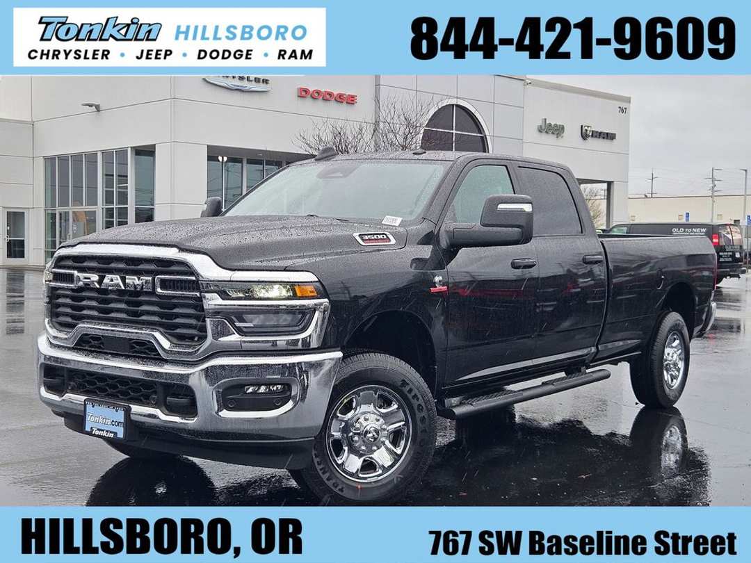 2026 Ram 3500 Tradesman Diamond Black Crystal Pearlcoat 6.7L I6 4WD 8-Speed Automatic115-Volt Auxiliary Front Power Outlet, 12" Touchscreen Display, 2 Way Rear Headrest Seat, 4 Way Front Headrests, 4-Wheel Disc Brakes, 40/20/40 Split Bench Seat, 400W Inverter, 4G LTE Wi-Fi Hot Spot, 5th Wheel/Gooseneck Towing Prep Group, 6 Speakers, ABS brakes, Air Conditioning, Air Conditioning ATC with Dual Zone Control, Alexa Built-in, AM/FM radio: SiriusXM, Apple CarPlay, Apple CarPlay/Android Auto, Auto-Dimming Rear-View Mirror, Black Exterior Mirrors, Black Wheel Center Hub, Brake assist, Bright Front Bumper, Bright Rear Bumper, Bright Wheel Skins, Carpet Floor Covering, Center Hub, Chrome Grille Surround, Cloth 40/20/40 Bench Seat, Compass, Connected Travel and Traffic Services, Connectivity - US/Canada, Convenience Group, Delay-off headlights, Disassociated Touchscreen Display, Driver door bin, Dual front impact airbags, Dual front side impact airbags, Electronic Stability Control, Emergency Vehicle Alert System (EVAS), Exterior 115V AC Outlet, Exterior Mirrors Courtesy Lamps, Exterior Mirrors with Heating Element, Exterior Mirrors with Supplemental Signals, For Details Visit DriveUconnect.com, For More Info, Call 800-643-2112, Front and Rear Floor Mats, Front anti-roll bar, Front Armrest with Cupholders, Front Center Armrest w/Storage, Front fog lights, Front License Plate Bracket, Front reading lights, Fully automatic headlights, Global Telematics Box Module, Google Android Auto, GPS Antenna Input, GPS Navigation, HD Radio, Illuminated entry, Integrated Voice Command with Bluetooth, Low tire pressure warning, Manual Adjust 4-Way Driver Seat, Manual Adjust 4-Way Front Passenger Seat, Manual Folding Exterior Mirrors, Manual Telescoping Mirrors, Matte Black Mesh with Chrome Grille, Mirror Running Lights, Mopar Black Tubular Side Steps, MyFlexCare Service Diesel, Occupant sensing airbag, Off-Road Information Pages, Outside temperature display, Overhead airbag, Overhead console, Panic alarm, ParkSense Front/Rear Park Assist System, ParkView Rear Back-Up Camera, Passenger door bin, Passenger vanity mirror, Power Adjust Mirrors, Power Heat Fold Telescopic Mirrors, Power steering, Power windows, Power-Adjustable Convex Aux Mirrors, Quick Order Package 24A Tradesman, Radio data system, Radio: Uconnect 5 Navigation with 12.0" Display, Radio: Uconnect 5 with 8.4" Display, Rear Folding Seat, Rear Power Sliding Window, Rear step bumper, Rear window defroster, Remote keyless entry, Remote USB Port - Charge Only, Selectable Tire Fill Alert, SiriusXM Radio Service, SiriusXM with 360L, Speed control, Storage Tray, Tachometer, Tilt steering wheel, Tinted Acoustic Windshield Glass, Traction control, Tradesman Level 2A Equipment Group, Trailer Tow Pages, Variably intermittent wipers, Voltmeter, Wheels: 18" x 8.0" Black Painted Steel, Wheels: 18" x 8.0" Steel Chrome Clad. Price includes: $1000 - 2026 National Bonus Cash . Exp. 04/30/2026