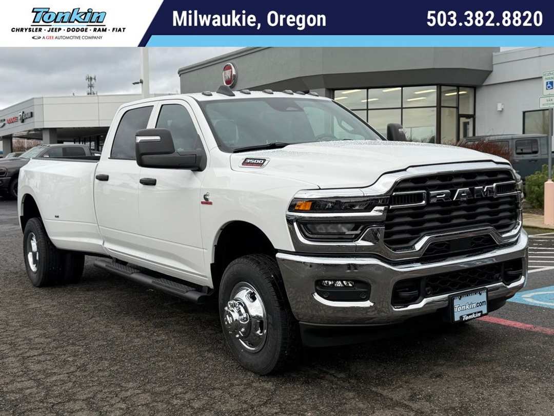 $10,228 off MSRP!2026 Ram 3500 Tradesman Bright White Clearcoat 115-Volt Auxiliary Front Power Outlet, 12" Touchscreen Display, 2 Way Rear Headrest Seat, 4 Way Front Headrests, 4-Wheel Disc Brakes, 40/20/40 Split Bench Seat, 400W Inverter, 4G LTE Wi-Fi Hot Spot, 50 Gallon Fuel Tank, 5th Wheel/Gooseneck Towing Prep Group, 6 Speakers, 6000# Front Axle with Hub Extension, ABS brakes, Air Conditioning, Air Conditioning ATC with Dual Zone Control, Alexa Built-in, AM/FM radio: SiriusXM, Apple CarPlay, Apple CarPlay/Android Auto, Auto-Dimming Rear-View Mirror, Bed Convenience Group, Black Exterior Mirrors, Black Premium Wheels, Box and Rear Fender Clearance Lamps, Brake assist, Bright Front Bumper, Bright Rear Bumper, Bright Wheel Skins, Carpet Floor Covering, Center Hub, Chrome Grille Surround, Clearance Lamps, Cloth 40/20/40 Bench Seat, Commercial Features Package, Compass, Connected Travel and Traffic Services, Connectivity - US/Canada, Convenience Group, Delay-off headlights, Disassociated Touchscreen Display, Driver door bin, Dual front impact airbags, Dual front side impact airbags, Dual Rear Wheels, Electronic Stability Control, Emergency Vehicle Alert System (EVAS), Exterior 115V AC Outlet, Exterior Mirrors Courtesy Lamps, Exterior Mirrors with Heating Element, Exterior Mirrors with Supplemental Signals, For Details Visit DriveUconnect.com, For More Info, Call 800-643-2112, Front and Rear Floor Mats, Front anti-roll bar, Front Armrest with Cupholders, Front Center Armrest w/Storage, Front fog lights, Front License Plate Bracket, Front reading lights, Fully automatic headlights, Global Telematics Box Module, Google Android Auto, GPS Antenna Input, GPS Navigation, HD Radio, Illuminated entry, Integrated Voice Command with Bluetooth, LED Bed Lighting, Low tire pressure warning, Manual Adjust 4-Way Driver Seat, Manual Adjust 4-Way Front Passenger Seat, Manual Folding Exterior Mirrors, Matte Black Mesh with Chrome Grille, Max Tow Package, Mirror Running Lights, Mopar Black Tubular Side Steps, MOPAR Spray in Bedliner, MyFlexCare Service Diesel, Nexen Brand Tires, Occupant sensing airbag, Off-Road Information Pages, Outside temperature display, Overhead airbag, Overhead console, Panic alarm, ParkSense Front/Rear Park Assist System, ParkView Rear Back-Up Camera, Passenger door bin, Passenger vanity mirror, Power Adjust Mirrors, Power Heat Fold Telescopic Mirrors, Power steering, Power windows, Power-Adjustable Convex Aux Mirrors, Quick Order Package 24A Tradesman, Radio data system, Radio: Uconnect 5 Navigation with 12.0" Display, Radio: Uconnect 5 with 8.4" Display, Rear Folding Seat, Rear Power Sliding Window, Rear step bumper, Rear Wheelhouse Liners, Rear window defroster, Remote keyless entry, Remote USB Port - Charge Only, Selectable Tire Fill Alert, SiriusXM Radio Service, SiriusXM with 360L, Speed control, Storage Tray, Tachometer, Tilt steering wheel, Tinted Acoustic Windshield Glass, Traction control, Tradesman Level 2A Equipment Group, Trailer Tow Pages, Variably intermittent wipers, Voltmeter, Wheels: 17" x 6.0" Steel Chrome Clad, Wheels: 18" x 8.0" Black Painted Steel. Price includes: $1000 - 2026 National Bonus Cash . Exp. 03/31/2026