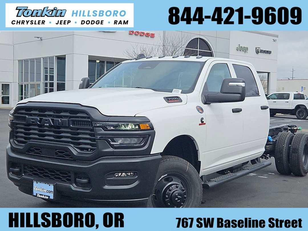 2026 Ram 3500HD Tradesman Bright White Clearcoat Cummins 6.7L I6 Turbodiesel 4WD 8-Speed Automatic11.50" Dual Wheels Rear Axle, 2 Way Rear Headrest Seat, 4-Wheel Disc Brakes, 4.10 Axle Ratio, 40/20/40 Split Bench Seat, 4G LTE Wi-Fi Hot Spot, 52 and 22 Gallon Dual Fuel Tanks, 6 Speakers, 6000# Front Axle with Hub Extension, ABS brakes, Air Conditioning, AM/FM radio: SiriusXM, Apple CarPlay, Apple CarPlay/Android Auto, Black Exterior Mirrors, Black Power Heated Fold Telescope Mirrors, Black Tubular Side Steps, Black Wheel Center Hub, Center Hub, Compass, Connectivity - US/Canada, Delay-off headlights, Driver door bin, Dual front impact airbags, Dual Rear Wheels, Electronic Stability Control, Emergency communication system: RAM Connect, Exterior Mirrors Courtesy Lamps, Exterior Mirrors with Heating Element, Exterior Mirrors with Supplemental Signals, For Details, Visit DriveUconnect.com, Front anti-roll bar, Front Armrest with Cupholders, Front Center Armrest w/Storage, Front fog lights, Front reading lights, Fully automatic headlights, Global Telematics Box Module, Google Android Auto, GPS Antenna Input, HD Vinyl 40/20/40 Split Bench Seat, Illuminated entry, Integrated Voice Command with Bluetooth, Manual Adjust 4-Way Driver Seat, Manual Adjust 4-Way Front Passenger Seat, Manual DPF Regeneration, Manual Folding Exterior Mirrors, Manual Telescoping Mirrors, Mirror Running Lights, MyFlexCare Service Diesel, Nexen Brand Tires, Occupant sensing airbag, Outside temperature display, Overhead console, Panic alarm, ParkView Rear Back-Up Camera, Passenger door bin, Passenger vanity mirror, Power Adjust Mirrors, Power steering, Power windows, Power-Adjustable Convex Aux Mirrors, Quick Order Package 25A Tradesman, Radio data system, Radio: Uconnect 5 with 8.4" Display, Rear anti-roll bar, Rear Folding Seat, Rear Window Defroster, Remote keyless entry, Remote USB Port - Charge Only, Speed control, Storage Tray, Tachometer, Temperature and Compass Gauge, Tilt steering wheel, Traction control, Tradesman Level 1 Equipment Group, Trailer Brake Control, Trailer Light Check, Variably intermittent wipers, Voltmeter, Wheels: 18" x 8.0" Steel Painted. Price includes: $2500 - 2026 National Bonus Cash . Exp. 03/31/2026