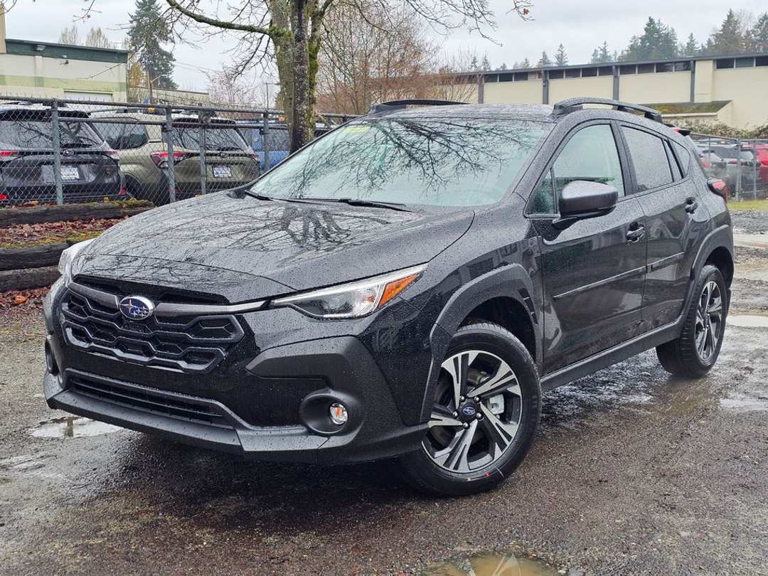 2026 Subaru Crosstrek PremiumRecent Arrival!2026 Subaru Crosstrek Premium 2.5L 4-Cylinder DOHC 16V Lineartronic CVT 4D Sport Utility AWD Crystal Black 4-Wheel Disc Brakes, 6 Speakers, ABS brakes, Air Conditioning, Alloy wheels, AM/FM radio: SiriusXM with 360L, Anti-whiplash front head restraints, Auto High-beam Headlights, Automatic temperature control, Brake assist, Bumpers: body-color, Cargo Cover, Cargo Net, Cloth Upholstery, Crystal Black Silica Body Side Molding, Driver door bin, Driver vanity mirror, Dual front impact airbags, Dual front side impact airbags, Electronic Stability Control, Emergency communication system: MySubaru Companion (5-years free), Exterior Parking Camera Rear, Four wheel independent suspension, Front anti-roll bar, Front Bucket Seats, Front Center Armrest, Front dual zone A/C, Front fog lights, Front reading lights, Fully automatic headlights, Illuminated entry, Knee airbag, LED Upgrade, Low tire pressure warning, Occupant sensing airbag, Outside temperature display, Overhead airbag, Overhead console, Panic alarm, Passenger door bin, Passenger vanity mirror, Power door mirrors, Power steering, Power windows, Radio data system, Radio: Subaru 11.6" Multimedia Plus System, Rear anti-roll bar, Rear Bumper Cover, Rear seat center armrest, Rear side impact airbag, Rear window defroster, Rear window wiper, Remote keyless entry, Security system, Speed control, Speed-sensing steering, Splash Guards, Split folding rear seat, Spoiler, Steering wheel mounted audio controls, Tachometer, Telescoping steering wheel, Tilt steering wheel, Traction control, Trip computer, Turn signal indicator mirrors, Variably intermittent wipers, Wheels: 17" x 7.0" J Machine Finish Aluminum-Alloy, Windshield Sunshade.