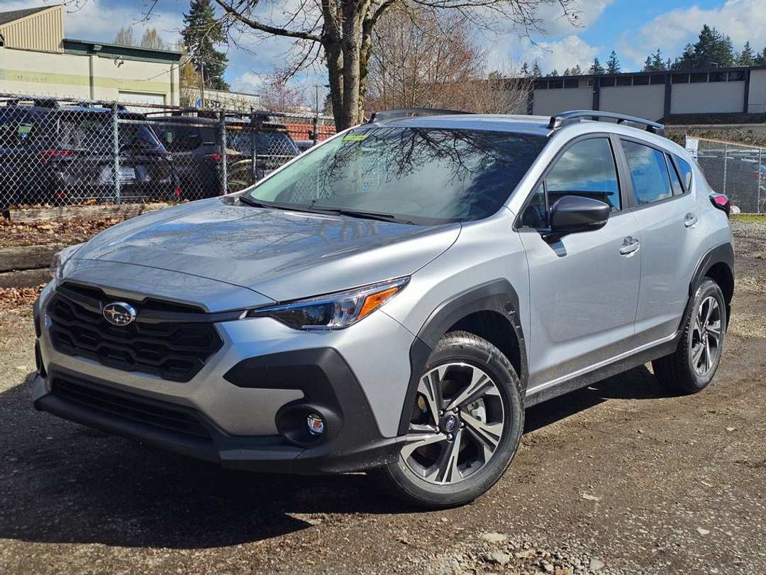 2026 Subaru Crosstrek Premium2026 Subaru Crosstrek Premium 2.5L 4-Cylinder DOHC 16V Lineartronic CVT 4D Sport Utility AWD Ice Silver 4-Wheel Disc Brakes, 6 Speakers, ABS brakes, Air Conditioning, Alloy wheels, AM/FM radio: SiriusXM with 360L, Anti-whiplash front head restraints, Auto High-beam Headlights, Automatic temperature control, Brake assist, Bumpers: body-color, Cargo Cover, Cloth Upholstery, Driver door bin, Driver vanity mirror, Dual front impact airbags, Dual front side impact airbags, Electronic Stability Control, Emergency communication system: MySubaru Companion (5-years free), Exterior Parking Camera Rear, Four wheel independent suspension, Front anti-roll bar, Front Bucket Seats, Front Center Armrest, Front dual zone A/C, Front fog lights, Front reading lights, Fully automatic headlights, Illuminated entry, Knee airbag, LED Upgrade, Low tire pressure warning, Occupant sensing airbag, Outside temperature display, Overhead airbag, Overhead console, Panic alarm, Passenger door bin, Passenger vanity mirror, Power door mirrors, Power steering, Power windows, Radio data system, Radio: Subaru 11.6" Multimedia Plus System, Rear anti-roll bar, Rear Bumper Cover, Rear seat center armrest, Rear side impact airbag, Rear window defroster, Rear window wiper, Remote keyless entry, Security system, Speed control, Speed-sensing steering, Splash Guards, Split folding rear seat, Spoiler, Steering wheel mounted audio controls, Tachometer, Telescoping steering wheel, Tilt steering wheel, Traction control, Trip computer, Turn signal indicator mirrors, Variably intermittent wipers, Wheels: 17" x 7.0" J Machine Finish Aluminum-Alloy.