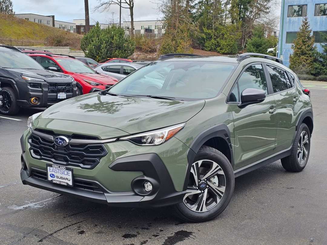 2026 Subaru Crosstrek Premium2026 Subaru Crosstrek Premium 2.5L 4-Cylinder DOHC 16V Lineartronic CVT 4D Sport Utility AWD Alpine Green 10-Way Power Driver's Seat, 4-Wheel Disc Brakes, 6 Speakers, ABS brakes, Air Conditioning, All-Weather Package, Alloy wheels, AM/FM radio: SiriusXM with 360L, Anti-whiplash front head restraints, Auto High-beam Headlights, Auto-Dimming Exterior Mirror with Approach Light, Auto-Dimming Mirror with Compass and HomeLink, Automatic temperature control, Blind Spot Detection (BSD), Brake assist, BSD/RCTA and All Weather Package and Power Driver Seat and Power Moonroof, Bumpers: body-color, Cloth Upholstery, Crosstrek Mirror Package, Driver door bin, Driver vanity mirror, Dual front impact airbags, Dual front side impact airbags, Dual-Mode Heated Front Seats, Electronic Stability Control, Emergency communication system: MySubaru Companion (5-years free), Exterior Parking Camera Rear, Four wheel independent suspension, Front anti-roll bar, Front Bucket Seats, Front Center Armrest, Front dual zone A/C, Front fog lights, Front reading lights, Fully automatic headlights, Heated Power Exterior Mirrors, Illuminated entry, Knee airbag, Low tire pressure warning, Occupant sensing airbag, Outside temperature display, Overhead airbag, Overhead console, Panic alarm, Passenger door bin, Passenger vanity mirror, Power door mirrors, Power Moonroof, Power steering, Power windows, Radio data system, Radio: Subaru 11.6" Multimedia Plus System, Rear anti-roll bar, Rear Cross-Traffic Alert (RCTA) System, Rear seat center armrest, Rear side impact airbag, Rear window defroster, Rear window wiper, Remote keyless entry, Security system, Speed control, Speed-sensing steering, Split folding rear seat, Spoiler, Steering wheel mounted audio controls, Tachometer, Telescoping steering wheel, Tilt steering wheel, Traction control, Trip computer, Turn signal indicator mirrors, Variably intermittent wipers, Wheels: 17" x 7.0" J Machine Finish Aluminum-Alloy, Windshield De-Icer Wipers.