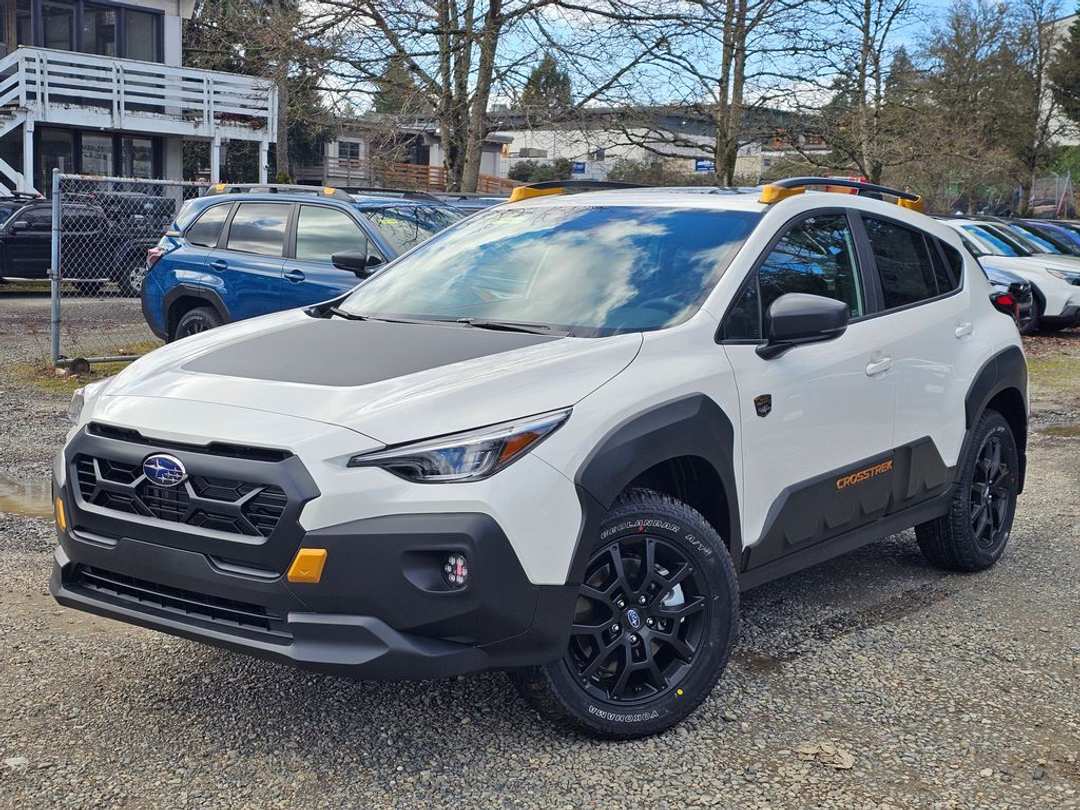 2026 Subaru Crosstrek Wilderness2026 Subaru Crosstrek Wilderness 2.5L 4-Cylinder DOHC 16V Lineartronic CVT 4D Sport Utility AWD Crystal White Pearl 10-Way Power Driver's Seat, 4-Wheel Disc Brakes, 6 Speakers, ABS brakes, Air Conditioning, Alloy wheels, AM/FM radio: SiriusXM with 360L, Anti-whiplash front head restraints, Auto High-beam Headlights, Auto-Dimming Exterior Mirror with Approach Light, Auto-Dimming Mirror with Compass and HomeLink, Automatic temperature control, Brake assist, Bumpers: body-color, Crosstrek Mirror Package, Driver door bin, Driver vanity mirror, Dual front impact airbags, Dual front side impact airbags, Electronic Stability Control, Emergency communication system: MySubaru Companion (5-years free), Exterior Parking Camera Rear, Footwell Illumination Kit, Four wheel independent suspension, Front anti-roll bar, Front Bucket Seats, Front Center Armrest, Front dual zone A/C, Front fog lights, Front reading lights, Fully automatic headlights, Harman/Kardon Audio and Power Moonroof and Power Driver Seat, Harman/Kardon Speaker System, Heated door mirrors, Heated Front Bucket Seats, Heated front seats, Heated steering wheel, Illuminated entry, Knee airbag, Leather Shift Knob, Leather steering wheel, LED Upgrade, Low tire pressure warning, Occupant sensing airbag, Outside temperature display, Overhead airbag, Overhead console, Panic alarm, Passenger door bin, Passenger vanity mirror, Power door mirrors, Power Moonroof, Power steering, Power windows, Radio data system, Radio: Subaru 11.6" Multimedia Plus System, Rear anti-roll bar, Rear seat center armrest, Rear side impact airbag, Rear window defroster, Rear window wiper, Remote keyless entry, Security system, Speed control, Speed-sensing steering, Splash Guards - Wilderness, Split folding rear seat, Spoiler, Steering wheel mounted audio controls, Tachometer, Telescoping steering wheel, Tilt steering wheel, Traction control, Trip computer, Turn signal indicator mirrors, Variably intermittent wipers, Wheels: 17" x 7.0" J Matte Black Aluminum-Alloy, Wilderness StarTex Upholstery.