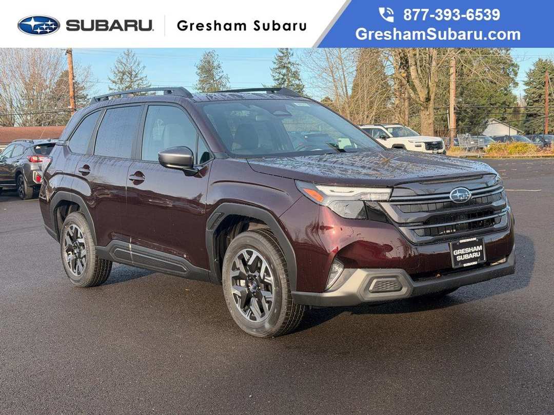 4-Wheel Disc Brakes, 6 Speakers, ABS brakes, Air Conditioning, Alloy wheels, AM/FM radio: SiriusXM with 360L, Anti-whiplash front head restraints, Auto High-beam Headlights, Automatic temperature control, Brake assist, Bumpers: body-color, Driver door bin, Driver vanity mirror, Dual front impact airbags, Dual front side impact airbags, Electronic Stability Control, Emergency communication system: MySubaru Companion (5-years free), Exterior Parking Camera Rear, Four wheel independent suspension, Front anti-roll bar, Front Bucket Seats, Front Center Armrest, Front dual zone A/C, Front fog lights, Front reading lights, Fully automatic headlights, Heated door mirrors, Heated Front Bucket Seats, Heated front seats, Illuminated entry, Knee airbag, Leather steering wheel, Low tire pressure warning, Occupant sensing airbag, Outside temperature display, Overhead airbag, Overhead console, Panic alarm, Passenger door bin, Passenger vanity mirror, Power door mirrors, Power driver seat, Power moonroof: Panoramic, Power steering, Power windows, Premium Textured Cloth Upholstery, Radio data system, Radio: Subaru 11.6" Multimedia Plus System, Rear anti-roll bar, Rear seat center armrest, Rear window defroster, Rear window wiper, Remote keyless entry, Security system, Speed control, Speed-sensing steering, Split folding rear seat, Spoiler, Steering wheel mounted audio controls, Tachometer, Telescoping steering wheel, Tilt steering wheel, Traction control, Trip computer, Variably intermittent wipers, Wheels: 17" x 7.0 J Dark Metallic Aluminum-Alloy. Recent Arrival! 2026 Subaru Forester Premium 4D Sport Utility Lineartronic CVT 2.5L 4-Cylinder DOHC 16V AWD MahoganyVisit Gresham Subaru online at www.GreshamSubaru.com and see why we service Portland and Vancouver as The BIG Subaru Store with the SMALL Prices!!!