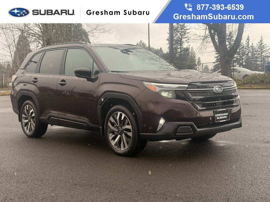 11 Speakers, 4-Wheel Disc Brakes, ABS brakes, Air Conditioning, Alloy wheels, AM/FM radio: SiriusXM with 360L, Anti-whiplash front head restraints, Auto High-beam Headlights, Automatic temperature control, Brake assist, Bumpers: body-color, Driver door bin, Driver vanity mirror, Dual front impact airbags, Dual front side impact airbags, Electronic Stability Control, Emergency communication system: MySubaru Companion (5-years free), Exterior Parking Camera Rear, Four wheel independent suspension, Front anti-roll bar, Front Bucket Seats, Front Center Armrest, Front dual zone A/C, Front fog lights, Front reading lights, Fully automatic headlights, harman/kardon® Speakers, Heads-Up Display, Heated and Ventilated Front Bucket Seats, Heated door mirrors, Heated front seats, Heated rear seats, Heated steering wheel, HVAC memory, Illuminated entry, Knee airbag, Leather Shift Knob, Leather steering wheel, Low tire pressure warning, Memory seat, Navigation System, Occupant sensing airbag, Outside temperature display, Overhead airbag, Overhead console, Panic alarm, Passenger door bin, Passenger vanity mirror, Perforated Leather-Trimmed Upholstery, Power door mirrors, Power driver seat, Power Liftgate, Power moonroof: Panoramic, Power passenger seat, Power steering, Power windows, Radio data system, Radio: Subaru 11.6" Multimedia Navigation System, Rain sensing wipers, Rear anti-roll bar, Rear seat center armrest, Rear window defroster, Rear window wiper, Remote keyless entry, Security system, Speed control, Speed-sensing steering, Split folding rear seat, Spoiler, Steering wheel mounted audio controls, Tachometer, Telescoping steering wheel, Tilt steering wheel, Traction control, Trip computer, Turn signal indicator mirrors, Variably intermittent wipers, Ventilated front seats, Wheels: 19" x 7.5 J Dark Gray Aluminum-Alloy. Recent Arrival! 2026 Subaru Forester Touring 4D Sport Utility Lineartronic CVT 2.5L 4-Cylinder DOHC 16V AWD MahoganyVisit Gresham Subaru online at www.GreshamSubaru.com and see why we service Portland and Vancouver as The BIG Subaru Store with the SMALL Prices!!!