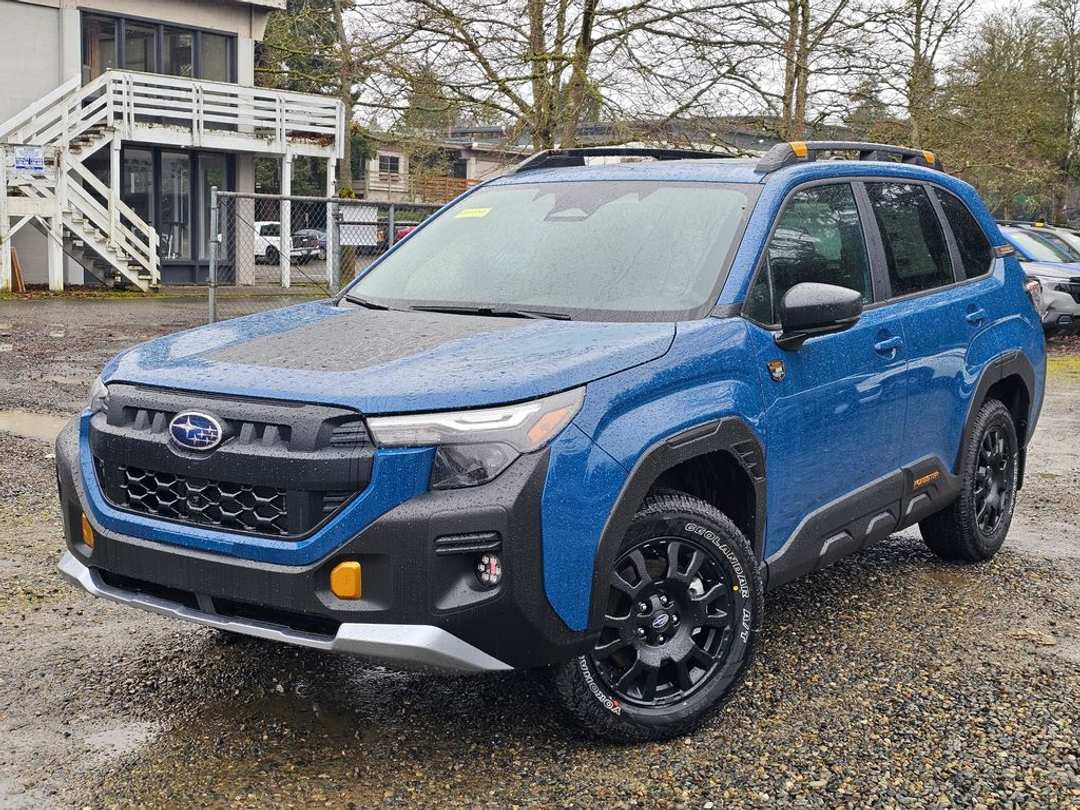 2026 Subaru Forester WildernessRecent Arrival!2026 Subaru Forester Wilderness 2.5L 4-Cylinder DOHC 16V Lineartronic CVT 4D Sport Utility AWD Geyser Blue 4-Wheel Disc Brakes, 6 Speakers, ABS brakes, Air Conditioning, Alloy wheels, AM/FM radio: SiriusXM with 360L, Anti-whiplash front head restraints, Auto High-beam Headlights, Auto-Dimming Exterior Mirror with Approach Light, Auto-Dimming Mirror with Compass and HomeLink, Automatic temperature control, Brake assist, Bumpers: body-color, Cargo Sidewall Protector, Door Projector Lights, Driver door bin, Driver vanity mirror, Dual front impact airbags, Dual front side impact airbags, Electronic Stability Control, Emergency communication system: MySubaru Companion (5-years free), Exterior Parking Camera Rear, Four wheel independent suspension, Front anti-roll bar, Front Bucket Seats, Front Center Armrest, Front dual zone A/C, Front fog lights, Front reading lights, Fully automatic headlights, Harman/Kardon Speaker System and Power Rear Gate, Heated door mirrors, Heated Front Bucket Seats, Heated front seats, Illuminated entry, Knee airbag, LED Upgrade, Low tire pressure warning, Occupant sensing airbag, Outside temperature display, Overhead airbag, Overhead console, Panic alarm, Passenger door bin, Passenger vanity mirror, Power door mirrors, Power driver seat, Power moonroof: Panoramic, Power Rear Gate, Power steering, Power windows, Radio data system, Radio: Subaru 11.6" Multimedia Navigation System, Radio: Subaru 11.6" Multimedia Plus System, Rain sensing wipers, Rear anti-roll bar, Rear seat center armrest, Rear window defroster, Rear window wiper, Remote keyless entry, Security system, Speed control, Speed-sensing steering, Splash Guards, Split folding rear seat, Spoiler, Steering wheel mounted audio controls, Tachometer, Telescoping steering wheel, Textured StarTex Upholstery, Tilt steering wheel, Traction control, Trip computer, Turn signal indicator mirrors, Variably intermittent wipers, Wheels: 17" x 7.0 J Matte Black Finish Aluminum-Alloy.