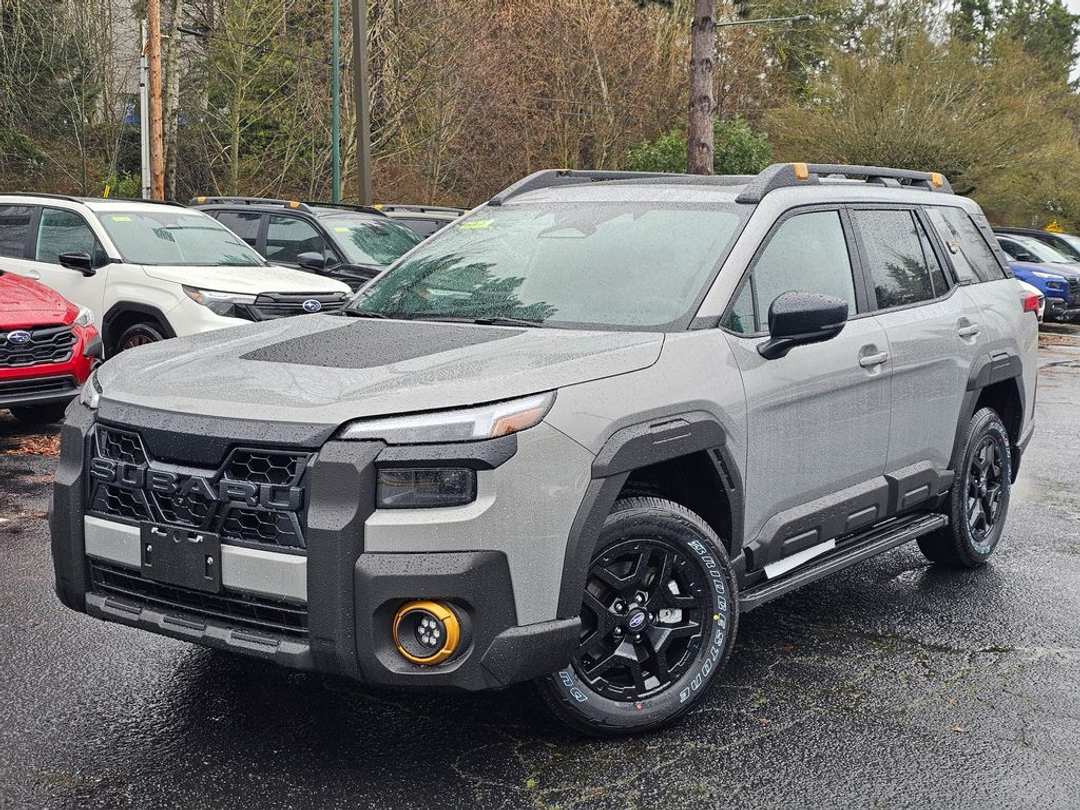 2026 Subaru Outback Wilderness2026 Subaru Outback Wilderness 2.4L 4-Cylinder DOHC 16V CVT Lineartronic 4D Sport Utility AWD River Rock Pearl 12 Speakers, 4-Wheel Disc Brakes, ABS brakes, Air Conditioning, Alloy wheels, AM/FM radio: SiriusXM with 360L, Anti-whiplash front head restraints, Auto High-beam Headlights, Auto-Dimming Exterior Mirror with Approach Light, Auto-Dimming Mirror with Compass and HomeLink, Automatic temperature control, Blind Spot Warning, Brake assist, Bumpers: body-color, Driver door bin, Driver vanity mirror, Dual front impact airbags, Dual front side impact airbags, Electronic Stability Control, Emergency communication system: MySubaru Companion (5-years free), Exterior Parking Camera Rear, Four wheel independent suspension, Front anti-roll bar, Front Bucket Seats, Front Center Armrest w/Storage, Front dual zone A/C, Front fog lights, Front reading lights, Fully automatic headlights, harman/kardon® Speakers, Heated door mirrors, Heated Front Bucket Seats, Heated front seats, Heated rear seats, Heated steering wheel, HVAC memory, Illuminated entry, Knee airbag, Leather Shift Knob, Leather steering wheel, Low tire pressure warning, Moonroof and Navigation and Surround View Monitor, Occupant sensing airbag, Outside temperature display, Overhead airbag, Overhead console, Panic alarm, Passenger door bin, Passenger vanity mirror, Power door mirrors, Power driver seat, Power Liftgate, Power Moonroof, Power steering, Power windows, Radio: Subaru 12.1" Multimedia System, Radio: Subaru 12.1" Multimedia System with Navigation, Rain sensing wipers, Rear anti-roll bar, Rear Bumper Cover, Rear seat center armrest, Rear window defroster, Rear window wiper, Remote keyless entry, Running Boards, Security system, Speed control, Speed-sensing steering, Splash Guards, Split folding rear seat, Spoiler, StarTex-Trimmed Upholstery, Steering wheel mounted audio controls, Surround View Monitor, Tachometer, Telescoping steering wheel, Tilt steering wheel, Traction control, Trip computer, Turn signal indicator mirrors, Variably intermittent wipers, Wheels: 17" x 7J Matte Black Finish Aluminum-Alloy.