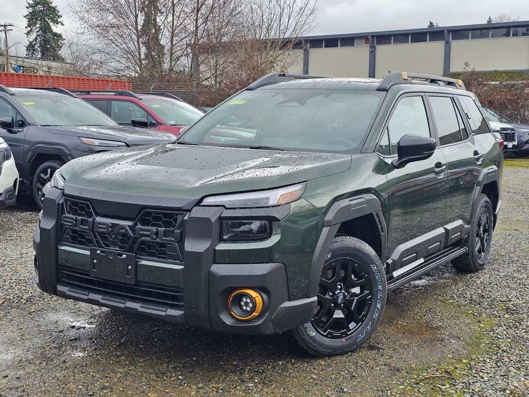 2026 Subaru Outback Wilderness2026 Subaru Outback Wilderness 2.4L 4-Cylinder DOHC 16V CVT Lineartronic 4D Sport Utility AWD Deep Emerald Green Pearl 12 Speakers, 4-Wheel Disc Brakes, ABS brakes, Air Conditioning, Alloy wheels, AM/FM radio: SiriusXM with 360L, Anti-whiplash front head restraints, Auto High-beam Headlights, Auto-Dimming Exterior Mirror with Approach Light, Auto-Dimming Mirror with Compass and HomeLink, Automatic temperature control, Blind Spot Warning, Brake assist, Bumpers: body-color, Driver door bin, Driver vanity mirror, Dual front impact airbags, Dual front side impact airbags, Electronic Stability Control, Emergency communication system: MySubaru Companion (5-years free), Exterior Parking Camera Rear, Four wheel independent suspension, Front anti-roll bar, Front Bucket Seats, Front Center Armrest w/Storage, Front dual zone A/C, Front fog lights, Front reading lights, Fully automatic headlights, harman/kardon® Speakers, Heated door mirrors, Heated Front Bucket Seats, Heated front seats, Heated rear seats, Heated steering wheel, HVAC memory, Illuminated entry, Knee airbag, Leather Shift Knob, Leather steering wheel, Low tire pressure warning, Moonroof and Navigation and Surround View Monitor, Occupant sensing airbag, Outside temperature display, Overhead airbag, Overhead console, Panic alarm, Passenger door bin, Passenger vanity mirror, Power door mirrors, Power driver seat, Power Liftgate, Power Moonroof, Power steering, Power windows, Radio: Subaru 12.1" Multimedia System, Radio: Subaru 12.1" Multimedia System with Navigation, Rain sensing wipers, Rear anti-roll bar, Rear Bumper Cover, Rear seat center armrest, Rear window defroster, Rear window wiper, Remote keyless entry, Running Boards, Security system, Speed control, Speed-sensing steering, Splash Guards, Split folding rear seat, Spoiler, StarTex-Trimmed Upholstery, Steering wheel mounted audio controls, Surround View Monitor, Tachometer, Telescoping steering wheel, Tilt steering wheel, Traction control, Trip computer, Turn signal indicator mirrors, Variably intermittent wipers, Wheels: 17" x 7J Matte Black Finish Aluminum-Alloy.