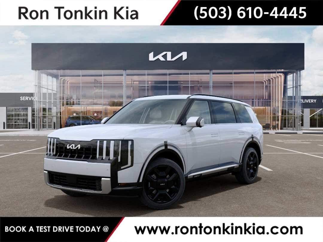 2027 Kia Telluride Hybrid SX Prestige Glacial White Pearl 4D Sport Utility 2.5L 4-Cylinder 6-Speed Automatic AWD 10-Way Power Driver Seat with Thigh Support, 14 Speakers, 3rd row seats: split-bench, 4-Wheel Disc Brakes, ABS brakes, Air Conditioning, All Season Floor Liners, Alloy wheels, AM/FM radio: SiriusXM, Apple CarPlay & Android Auto, Audio memory, Auto High-beam Headlights, Auto-dimming door mirrors, Auto-dimming Rear-View mirror, Auto-leveling suspension, Automatic temperature control, Brake assist, Bumpers: body-color, Cargo Cover, Compass, Delay-off headlights, Driver door bin, Driver vanity mirror, Dual front impact airbags, Dual front side impact airbags, Electronic Stability Control, Emergency communication system: 911 Connect, Exterior Parking Camera Rear, Four wheel independent suspension, Front anti-roll bar, Front Bucket Seats, Front Center Armrest, Front dual zone A/C, Front fog lights, Front reading lights, Fully automatic headlights, Garage door transmitter: HomeLink, Heads-Up Display, Heated and Ventilated Front Bucket Seats, Heated door mirrors, Heated front seats, Heated rear seats, Heated steering wheel, HVAC memory, Illuminated entry, Knee airbag, Low tire pressure warning, Memory seat, Mud Guards, Navigation System, Occupant sensing airbag, Outside temperature display, Overhead airbag, Overhead console, Panic alarm, Passenger door bin, Passenger vanity mirror, Power door mirrors, Power driver seat, Power Liftgate, Power moonroof, Power passenger seat, Power steering, Power windows, Radio data system, Radio: 14 Speaker Meridian Audio System, Rain sensing wipers, Rear air conditioning, Rear anti-roll bar, Rear reading lights, Rear side impact airbag, Rear window defroster, Rear window wiper, Reclining 3rd row seat, Remote keyless entry, Security system, Speed control, Speed-sensing steering, Split folding rear seat, Spoiler, Steering wheel memory, Steering wheel mounted audio controls, SynTex/SynTex Suede Seat Trim, Tachometer, Telescoping steering wheel, Tilt steering wheel, Traction control, Trip computer, Turn signal indicator mirrors, Variably intermittent wipers, Ventilated front seats, Ventilated rear seats, Wheels: 20" x 8" Type C Aluminum Alloy.Come See us today and Drive! RON TONKIN KIA 19335 SE MCLOUGHLIN BLVD GLADSTONE, OR 97027.