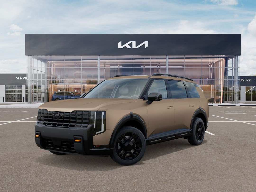 Terrain Brown Matte 2027 Kia Telluride X-Pro SX-Prestige AWD 8-Speed Automatic 2.5L I4 DGI Turbocharged DOHC 16V LEV3-SULEV30 274hp 14 Speakers, 3rd row seats: split-bench, 4-Wheel Disc Brakes, ABS brakes, Air Conditioning, Alloy wheels, AM/FM radio: SiriusXM, Apple CarPlay & Android Auto, Audio memory, Auto High-beam Headlights, Auto-dimming door mirrors, Auto-dimming Rear-View mirror, Auto-leveling suspension, Automatic temperature control, Brake assist, Bumpers: body-color, Carpeted Floor Mats, Compass, Cross Bars X-Line, Delay-off headlights, Driver door bin, Driver vanity mirror, Dual front impact airbags, Dual front side impact airbags, Electronic Stability Control, Emergency communication system: 911 Connect, Exterior Parking Camera Rear, Four wheel independent suspension, Front anti-roll bar, Front Bucket Seats, Front Center Armrest, Front dual zone A/C, Front fog lights, Front reading lights, Fully automatic headlights, Garage door transmitter: HomeLink, Heads-Up Display, Heated and Ventilated Front Bucket Seats, Heated door mirrors, Heated front seats, Heated rear seats, Heated steering wheel, HVAC memory, Illuminated entry, Knee airbag, Low tire pressure warning, Memory seat, Navigation System, Occupant sensing airbag, Outside temperature display, Overhead airbag, Overhead console, Panic alarm, Passenger door bin, Passenger vanity mirror, Power door mirrors, Power driver seat, Power Liftgate, Power moonroof, Power passenger seat, Power steering, Power windows, Radio data system, Radio: AM/FM Audio System, Rain sensing wipers, Rear air conditioning, Rear anti-roll bar, Rear reading lights, Rear side impact airbag, Rear window defroster, Rear window wiper, Reclining 3rd row seat, Remote keyless entry, Security system, Speed control, Speed-sensing steering, Split folding rear seat, Spoiler, Steering wheel memory, Steering wheel mounted audio controls, SynTex/SynTex Suede Seat Trim, Tachometer, Telescoping steering wheel, Tilt steering wheel, Traction control, Trip computer, Turn signal indicator mirrors, Variably intermittent wipers, Ventilated front seats, Ventilated rear seats, Wheels: 18" x 7.5" X-Pro Exclusive Type C Alloy.