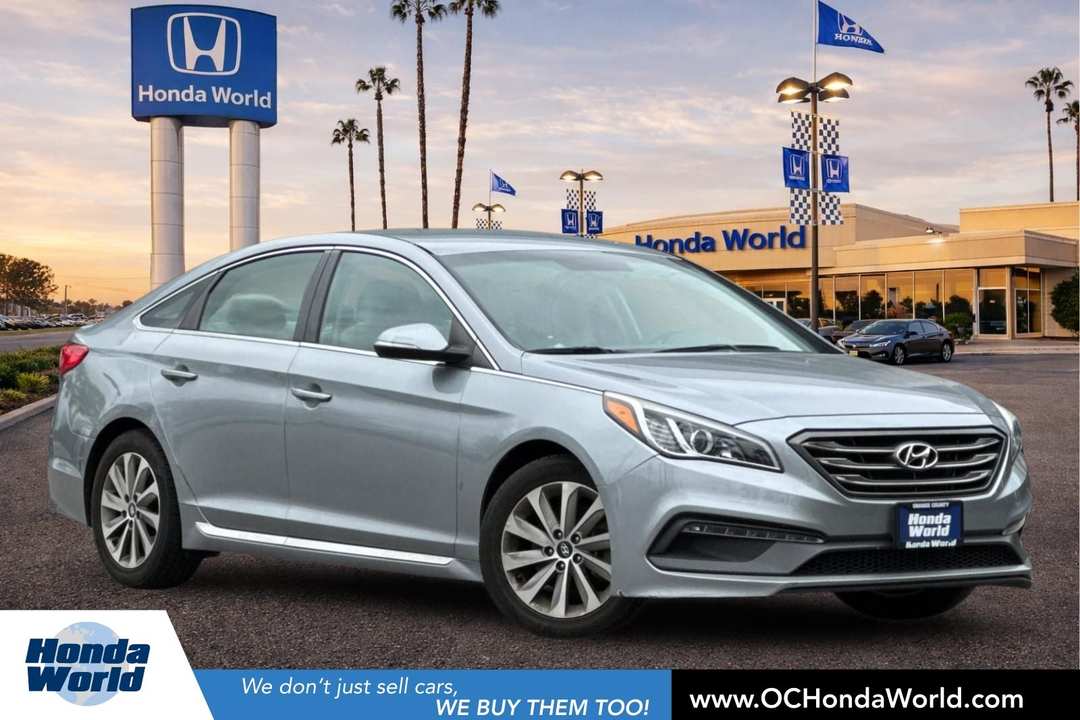 Discover the perfect blend of style, performance, and technology in this meticulously maintained 2016 Hyundai Sonata Sport. This sleek and sophisticated sedan is ready to elevate your driving experience.- Electrochromatic Mirror w/HomeLink and Compass- Carpeted Floor MatsPowered by a robust 2.4L I4 DGI DOHC 16V PZEV engine delivering 185 horsepower, this Sonata Sport provides an exhilarating yet efficient ride, with an impressive 38 MPG on the highway. Paired with a smooth-shifting 6-Speed Automatic with Shiftronic transmission, you'll enjoy seamless acceleration and confident handling.Adorned in a timeless Gray exterior, this Sonata Sport radiates a refined and modern aesthetic. Step inside and you'll be greeted by a well-appointed cabin featuring premium YES Essentials Premium Cloth Seating Surfaces, a Tilt and Telescoping Steering Wheel, and a state-of-the-art infotainment system with Apple CarPlay and Android Auto compatibility.Safety is paramount in this Sonata, which comes equipped with a comprehensive suite of advanced driver-assistance technologies, including Brake Assist, Electronic Stability Control, and a Rear View Camera for enhanced awareness and peace of mind on the road.Whether you're commuting to the office or embarking on a weekend getaway, this 2016 Hyundai Sonata Sport is the perfect companion. With its exceptional combination of style, performance, and technology, this sedan is sure to exceed your expectations and elevate your driving experience.We invite you to schedule a test drive and experience the Sonata Sport for yourself. Our knowledgeable sales team is here to answer any questions you may have and help you discover why this vehicle is the perfect fit for your lifestyle. Don't miss your chance to own this exceptional Hyundai Sonata Sport.