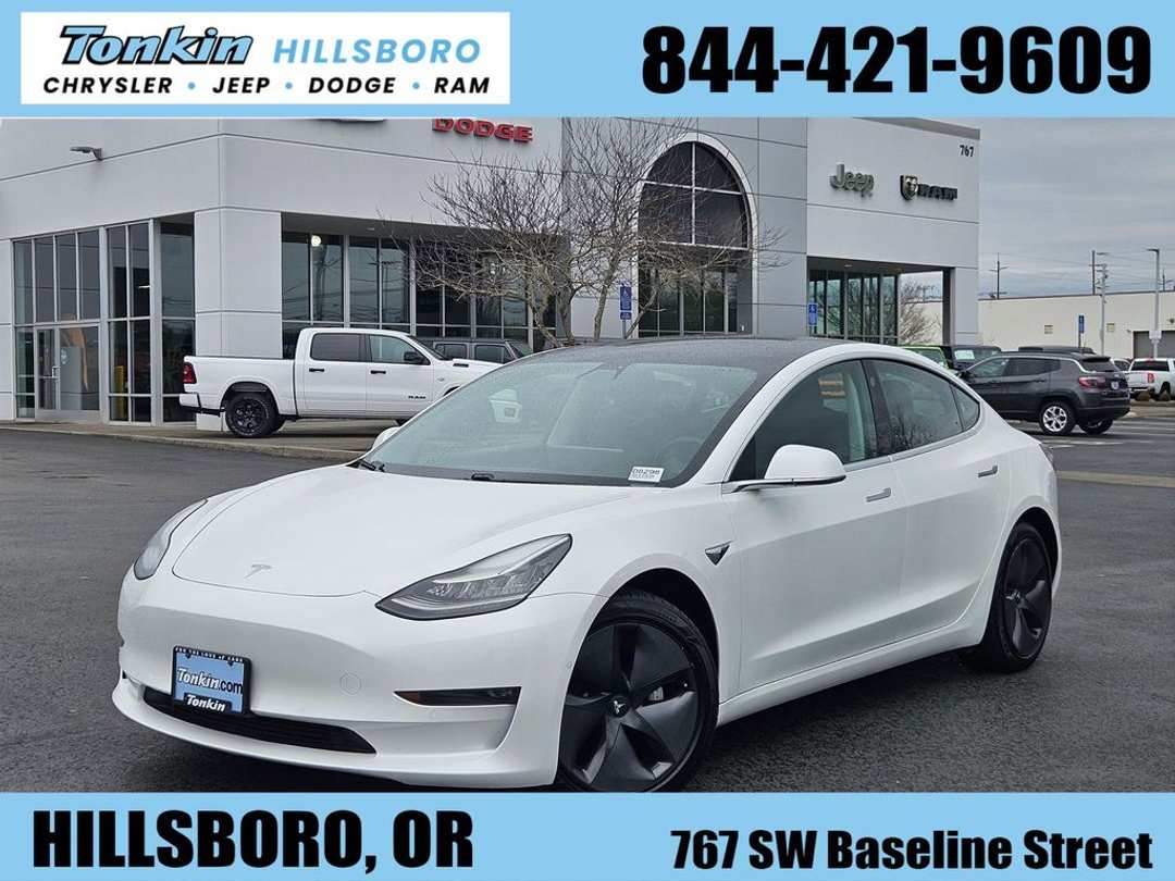 2020 Tesla Model 3 Long Range Pearl White Multi-Coat AWD Electric Motor 1-Speed Automatic15 Speakers, 4-Wheel Disc Brakes, ABS brakes, Air Conditioning, Alloy wheels, Auto High-beam Headlights, Auto-dimming Rear-View mirror, Automatic temperature control, Brake assist, Bumpers: body-color, Compass, Delay-off headlights, Driver door bin, Driver vanity mirror, Dual front impact airbags, Dual front side impact airbags, Electronic Stability Control, Exterior Parking Camera Rear, Four wheel independent suspension, Front anti-roll bar, Front Bucket Seats, Front Center Armrest, Front dual zone A/C, Front fog lights, Front reading lights, Fully automatic headlights, Genuine wood dashboard insert, Heated door mirrors, Heated front seats, Heated rear seats, Illuminated entry, Knee airbag, Low tire pressure warning, Memory seat, Navigation System, Occupant sensing airbag, Outside temperature display, Overhead airbag, Passenger door bin, Passenger vanity mirror, Power door mirrors, Power driver seat, Power passenger seat, Power steering, Power windows, Premium Audio System, Premium Heated Front Bucket Seats, Premium Seat Trim, Radio data system, Rear reading lights, Rear seat center armrest, Rear window defroster, Security system, Speed control, Speed-sensing steering, Split folding rear seat, Steering wheel memory, Steering wheel mounted A/C controls, Steering wheel mounted audio controls, Telescoping steering wheel, Tilt steering wheel, Traction control, Trip computer, Variably intermittent wipers, Wheels: 18" x 8.5" Aero.Clean CARFAX.You make the drive, we'll make the deal! Come to www.tonkinhillsborocjdr.com To see our Specials!! Call us at (844) 421-9609 For help with any of our departments. The Road is Yours With Tonkin Hillsboro Chrysler Jeep Dodge Ram!!