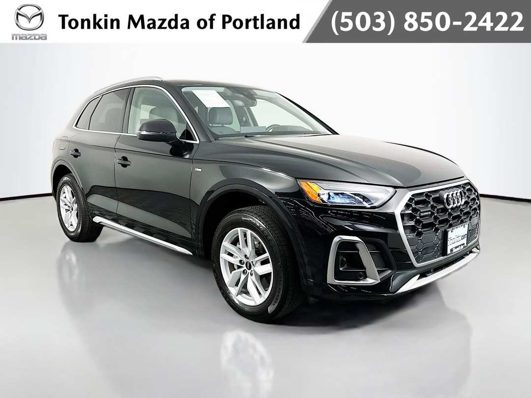 PANORAMIC SUNROOF! CONVENIENCE PACKAGE; HEATED STEERING HWEEL! CARFAX One-Owner. Clean CARFAX. Mythos Black Metallic 2022 Audi Q5 45 S line Premium quattro 4D Sport Utility 2.0L Turbocharged 7-Speed Automatic S tronic quattro Black Leather, 10 Speakers, 4-Wheel Disc Brakes, ABS brakes, Air Conditioning, AM/FM radio, Audi Advanced Key, Auto High-beam Headlights, Auto-Dimming Power Folding Exterior Mirrors, Auto-dimming Rear-View mirror, Automatic temperature control, Back Up Camera, Backup Camera, Blind Spot, BlueTooth, Brake assist, Bumpers: body-color, Compass, Convenience Package, Delay-off headlights, Driver door bin, Driver Seat Memory, Driver vanity mirror, Dual front impact airbags, Dual front side impact airbags, Electronic Stability Control, Emergency communication system: Audi connect CARE, Four wheel independent suspension, Front anti-roll bar, Front Bucket Seats, Front Center Armrest, Front dual zone A/C, Front fog lights, Front reading lights, Garage door transmitter: HomeLink, Genuine wood console insert, Genuine wood dashboard insert, Genuine wood door panel insert, Heated 8-Way Power Front Bucket Seats, Heated door mirrors, Heated front seats, Heated Seats, Heated Steering Wheel, Illuminated entry, Keyless Entry, Leather, Leather Seating Surfaces, Leather Shift Knob, Low tire pressure warning, Occupant sensing airbag, Outside temperature display, Overhead airbag, Overhead console, Panic alarm, Panorama Roof, Passenger vanity mirror, Power door mirrors, Power driver seat, Power Liftgate, Power passenger seat, Power steering, Power windows, Radio data system, Radio: Audi Sound System, Rear air conditioning, Rear anti-roll bar, Rear fog lights, Rear reading lights, Rear seat center armrest, Rear window defroster, Remote keyless entry, Roof rack, Security system, SiriusXM All Access Service, Speed control, Speed-sensing steering, Split folding rear seat, Spoiler, Steering wheel mounted audio controls, Tachometer, Telescoping steering wheel, Tilt steering wheel, Traction control, Trip computer, Turn signal indicator mirrors.23/28 City/Highway MPG 23/28 City/Highway MPG