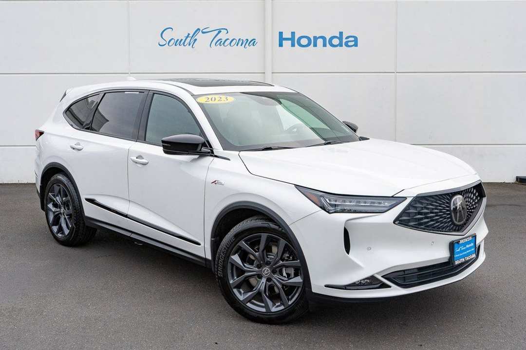 2023 Acura MDX A-Spec SH-AWD Platinum White Pearl 16 Speakers, 3rd row seats: split-bench, 4-Wheel Disc Brakes, 4.17 Axle Ratio, A/V remote: CabinControl, ABS brakes, Air Conditioning, Alloy wheels, AM/FM radio: SiriusXM, Anti-whiplash front head restraints, Apple CarPlay/Android Auto, Audio memory, Auto High-beam Headlights, Auto tilt-away steering wheel, Auto-dimming Rear-View mirror, Automatic temperature control, Brake assist, Bumpers: body-color, Compass, Delay-off headlights, Driver door bin, Driver vanity mirror, Dual front impact airbags, Dual front side impact airbags, Electronic Stability Control, Emergency communication system: AcuraLink, Exterior Parking Camera Rear, Four wheel independent suspension, Front anti-roll bar, Front Bucket Seats, Front Center Armrest, Front dual zone A/C, Front fog lights, Front reading lights, Fully automatic headlights, Garage door transmitter: HomeLink, Heated & Ventilated Front Sport Seats, Heated door mirrors, Heated front seats, HVAC memory, Illuminated entry, Knee airbag, Lane departure: Lane Keeping Assist System (LKAS) active, Leather steering wheel, Low tire pressure warning, Memory seat, Navigation system: Acura Navigation System with 3D View, Occupant sensing airbag, Outside temperature display, Overhead airbag, Overhead console, Panic alarm, Passenger door bin, Passenger vanity mirror, Perforated Premium Milano Leather Trimmed Seats, Power door mirrors, Power driver seat, Power Liftgate, Power moonroof, Power passenger seat, Power steering, Power windows, Premium audio system: Acura/ELS Studio 3D, Radio data system, Radio: ELS Studio 3D Premium Audio System, Rain sensing wipers, Rear air conditioning, Rear anti-roll bar, Rear reading lights, Rear seat center armrest, Rear window defroster, Rear window wiper, Remote keyless entry, Security system, Speed control, Speed-sensing steering, Speed-Sensitive Wipers, Split folding rear seat, Spoiler, Sport steering wheel, Steering wheel memory, Steering wheel mounted audio controls, Tachometer, Telescoping steering wheel, Tilt steering wheel, Traction control, Trip computer, Turn signal indicator mirrors, Variably intermittent wipers, Ventilated front seats, Wheels: 20" x 9" Aluminum Alloy. 3.5L V6 SOHC i-VTEC 24V 4D Sport Utility 10-Speed Automatic AWD CARFAX One-Owner. Clean CARFAX.