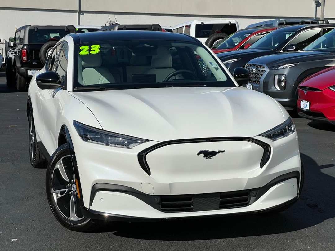 CARFAX One-Owner. Ford Gold Certified Certified, 10 Speakers, 4-Wheel Disc Brakes, ABS brakes, Air Conditioning, Alloy wheels, AM/FM radio: SiriusXM with 360L, AM/FM Stereo, Apple CarPlay/Android Auto, Auto High-beam Headlights, Auto-dimming Rear-View mirror, Automatic temperature control, Axle Ratio: 9.05, Brake assist, Bumpers: body-color, Compass, Delay-off headlights, Driver door bin, Driver vanity mirror, Dual front impact airbags, Dual front side impact airbags, Electronic Stability Control, Emergency communication system: 911 Assist, Equipment Group 300A, Exterior Parking Camera Rear, Four wheel independent suspension, Front anti-roll bar, Front Bucket Seats, Front Center Armrest, Front dual zone A/C, Front reading lights, Fully automatic headlights, Garage door transmitter, Heated door mirrors, Heated front seats, Heated Perforated ActiveX Bucket Seats, Heated steering wheel, Illuminated entry, Knee airbag, Low tire pressure warning, Memory seat, Mobile Power Cord (120V/240V), Navigation system: Connected Navigation, Occupant sensing airbag, Outside temperature display, Overhead airbag, Overhead console, Panic alarm, Passenger door bin, Passenger vanity mirror, Power door mirrors, Power driver seat, Power Liftgate, Power passenger seat, Power steering, Power windows, Radio data system, Rain sensing wipers, Rear anti-roll bar, Rear seat center armrest, Rear side impact airbag, Rear window defroster, Rear window wiper, Remote keyless entry, Security system, SiriusXM Radio w/360L, Speed control, Speed-sensing steering, Speed-Sensitive Wipers, Split folding rear seat, Spoiler, Steering wheel mounted audio controls, SYNC 4A w/Enhanced Voice Recognition, Telescoping steering wheel, Tilt steering wheel, Traction control, Trip computer, Turn signal indicator mirrors, Variably intermittent wipers, Wheels: 19" Shadow Silver-Painted Aluminum. 2023 Ford Mustang Mach-E Premium Electric Motor Single-Speed Automatic AWD 4D Sport Utility Star White Metallic Tri-Coat Certified. Ford Gold Certified Details: * Roadside Assistance * 172 Point Inspection * Limited Warranty: 12 Month/12,000 Mile (whichever comes first) after new car warranty expires or from certified purchase date * Transferable Warranty * Powertrain Limited Warranty: 84 Month/100,000 Mile (whichever comes first) from original in-service date * and 22,000 FordPass Rewards Points to use toward first two maintenance visits * Warranty Deductible: $100 * Vehicle History99/86 City/Highway MPG99/86 City/Highway MPGTo see more quality vehicles like this one right here just click on http://www.fordofkirkland.com or dial (425) 500-1074.