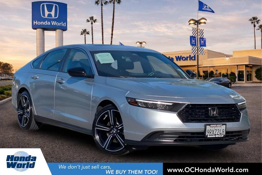 New Price! Certified. CARFAX One-Owner. Clean CARFAX. 46/41 City/Highway MPGOdometer is 15412 miles below market average! 2.0L 16V DOHC.Silver 2024 Honda Accord Hybrid Sport FWD eCVT 2.0L 16V DOHCHondaTrue Certified Details: * Powertrain Limited Warranty: 84 Month/100,000 Mile (whichever comes first) from original in-service date * Roadside Assistance * Transferable Warranty * Vehicle History * 182 Point Inspection * Vehicles purchased within New Vehicle Limited Warranty period: extends New Vehicle Limited Warranty to 5 years*/60,000 miles*. Honda Care Roadside Assistance for 2 year/100,000 miles (whichever occurs first). Up to two complimentary oil changes within the first year of ownership. SiriusXM 90-Day Trial. * Warranty Deductible: $0 * Limited Warranty: 24 Month/100,000 Mile (whichever comes first) after new car warranty expires or from certified purchase dateWE ACCEPT ALL FINANCE APPLICATIONS. LET US FIND THE BEST LOAN FOR YOU!!Print this page and call us now to schedule a test drive. We are open 7 days a week and just minutes from anywhere in Orange County. Our customers drive in from all over Southern California to take advantage of our great deals and easy buying process. Call now to speak with one of our friendly Pre-Owned Specialists. (714)890-8900.