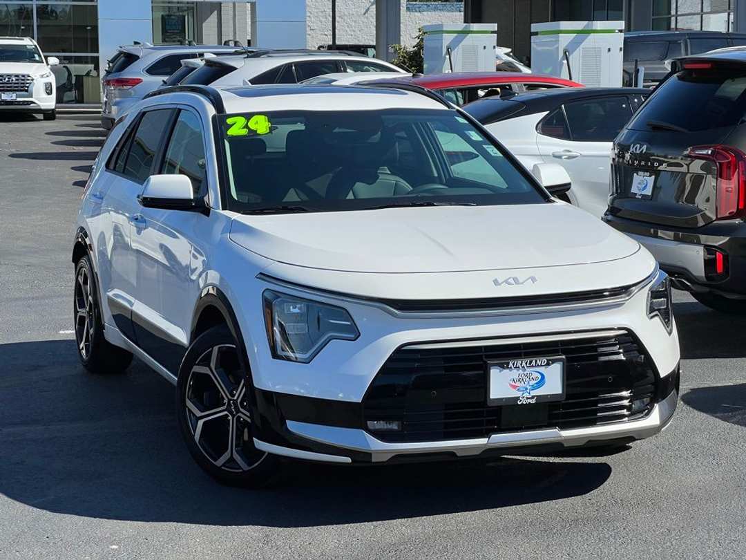 Recent Arrival! Clean CARFAX. CARFAX One-Owner. Odometer is 10258 miles below market average! 1.6L I4 DGI Hybrid DOHC 16V LEV3-SULEV30, 4-Wheel Disc Brakes, 4.438 Axle Ratio, 8 Speakers, ABS brakes, Air Conditioning, Alloy wheels, AM/FM radio: SiriusXM, Apple CarPlay & Android Auto, Auto High-beam Headlights, Auto-dimming Rear-View mirror, Automatic temperature control, Brake assist, Bumpers: body-color, Carpeted Floor Mats, Delay-off headlights, Driver door bin, Driver vanity mirror, Dual front impact airbags, Dual front side impact airbags, Electronic Stability Control, Emergency communication system: Kia Connect (includes 1 year free trial), Exterior Parking Camera Rear, Four wheel independent suspension, Front anti-roll bar, Front Bucket Seats, Front Center Armrest, Front dual zone A/C, Front fog lights, Front reading lights, Fully automatic headlights, harman/kardon® Speakers, Heated & Ventilated Front Bucket Seats (3-Steps), Heated door mirrors, Heated front seats, Heated steering wheel, Illuminated entry, Knee airbag, Low tire pressure warning, Memory seat, Navigation System, Occupant sensing airbag, Outside temperature display, Overhead airbag, Overhead console, Panic alarm, Passenger door bin, Passenger vanity mirror, Perforated Vegan Leather-Trimmed Seats, Power door mirrors, Power driver seat, Power Liftgate, Power moonroof, Power steering, Power windows, Radio: HD/SiriusXM, Rain sensing wipers, Rear anti-roll bar, Rear seat center armrest, Rear window defroster, Rear window wiper, Remote keyless entry, Security system, Smart Key w/ Push Button and Remote Start, Speed control, Speed-sensing steering, Split folding rear seat, Spoiler, Steering wheel mounted audio controls, Tachometer, Telescoping steering wheel, Tilt steering wheel, Traction control, Trip computer, Turn signal indicator mirrors, Variably intermittent wipers, Ventilated front seats, Wheels: 18" Machine Finished Alloy, 1.6L I4 DGI Hybrid DOHC 16V LEV3-SULEV30. 2024 Kia Niro Plug-In Hybrid SX 1.6L I4 DGI Hybrid DOHC 16V LEV3-SULEV30 6-Speed Dual Clutch FWD 4D Sport Utility Snow White Pearl53/54 City/Highway MPG53/54 City/Highway MPGTo see more quality vehicles like this one right here just click on http://www.fordofkirkland.com or dial (425) 500-1074.
