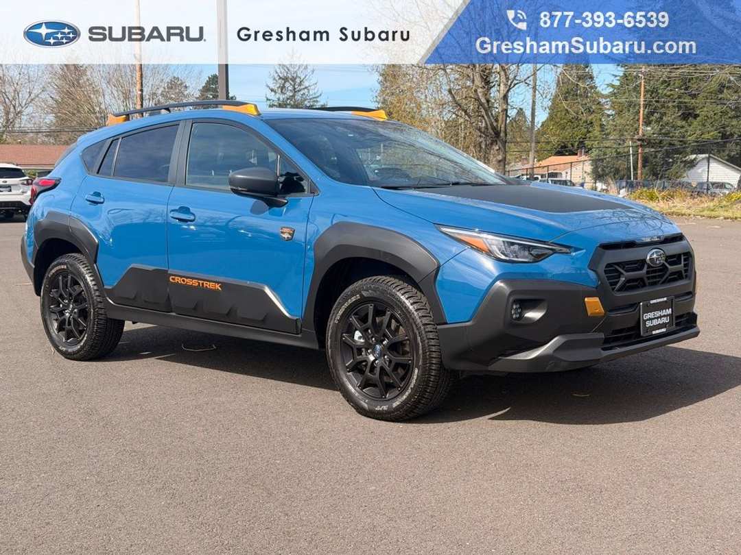 Recent Arrival! CARFAX One-Owner! Subaru Certified Pre-Owned!4-Wheel Disc Brakes, 4.11 Axle Ratio, 6 Speakers, ABS brakes, Air Conditioning, Alloy wheels, AM/FM radio: SiriusXM, Anti-whiplash front head restraints, Auto High-beam Headlights, Automatic temperature control, Brake assist, Bumpers: body-color, Driver door bin, Driver vanity mirror, Dual front impact airbags, Dual front side impact airbags, Electronic Stability Control, Emergency communication system: STARLINK Safety and Security (Subscription Required), Exterior Parking Camera Rear, Four wheel independent suspension, Front anti-roll bar, Front Bucket Seats, Front Center Armrest, Front dual zone A/C, Front fog lights, Front reading lights, Fully automatic headlights, Heated door mirrors, Heated Front Bucket Seats, Heated front seats, Illuminated entry, Knee airbag, Leather Shift Knob, Low tire pressure warning, Occupant sensing airbag, Outside temperature display, Overhead airbag, Overhead console, Panic alarm, Passenger door bin, Passenger vanity mirror, Power door mirrors, Power steering, Power windows, Radio data system, Radio: Subaru STARLINK 11.6" Multimedia Plus Sys, Rear anti-roll bar, Rear seat center armrest, Rear window defroster, Rear window wiper, Remote keyless entry, Security system, Speed control, Speed-sensing steering, Split folding rear seat, Spoiler, STARLINK/Apple CarPlay/Android Auto, Steering wheel mounted audio controls, Tachometer, Telescoping steering wheel, Tilt steering wheel, Traction control, Trip computer, Turn signal indicator mirrors, Variably intermittent wipers, Wheels: 17" x 7.0J Matte Black Aluminum Alloy, Wilderness StarTex Upholstery. 2024 Subaru Crosstrek Wilderness 4D Sport Utility 2.5L 4-Cylinder DOHC 16V Lineartronic CVT AWD Geyser Blue Pearl Subaru Certified Pre-Owned Details: * Transferable Warranty * SiriusXM 3-Month trial subscription, $500 Owner Loyalty coupon & 1 year trial subscription to STARLINK * Vehicle History * Roadside Assistance * Warranty Deductible: $0 * Powertrain Limited Warranty: 84 Month/100,000 Mile (whichever comes first) from original in-service date * 152 Point InspectionClean CARFAX.