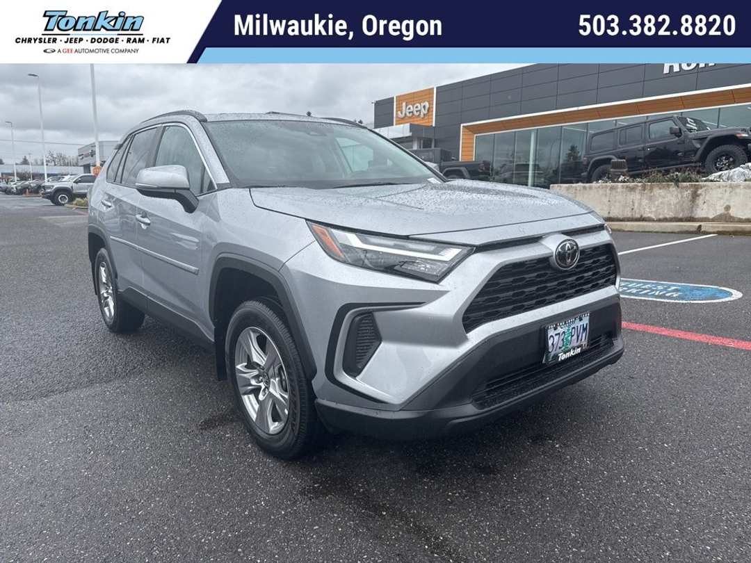 CARFAX One-Owner. Clean CARFAX. 2024 Toyota RAV4 XLE 2.5L 4-Cylinder DOHC Dual VVT-i 8-Speed Automatic AWD 4D Sport Utility Silver AWD, 3 Spoke Leather Heated Steering Wheel, Body Side Molding & Door Protection Package (TMS), Convenience Package, Front Door Smart Key System w/Push Button Start, Front Seat Heating, Tilt & Slide Moon Roof, Weather Package, 4-Wheel Disc Brakes, 6 Speakers, ABS brakes, Air Conditioning, AM/FM radio: SiriusXM, Auto High-beam Headlights, Automatic temperature control, Axle Ratio: 3.177, Brake assist, Bumpers: body-color, Custom Fuel Wheels and Off-Road Tires, Delay-off headlights, Driver door bin, Driver vanity mirror, Dual front impact airbags, Dual front side impact airbags, Electronic Stability Control, Emergency communication system: Safety Connect (10-year trial), Exterior Parking Camera Rear, Fabric Seat Trim, Four wheel independent suspension, Front anti-roll bar, Front Bucket Seats, Front Center Armrest, Front dual zone A/C, Front reading lights, Fully automatic headlights, Heated door mirrors, Illuminated entry, Knee airbag, Low tire pressure warning, Occupant sensing airbag, Outside temperature display, Overhead airbag, Overhead console, Panic alarm, Passenger door bin, Passenger vanity mirror, Power door mirrors, Power driver seat, Power steering, Power windows, Radio data system, Radio: AM/FM/XM Audio System, Rear anti-roll bar, Rear seat center armrest, Rear window defroster, Rear window wiper, Remote keyless entry, Speed control, Speed-sensing steering, Split folding rear seat, Spoiler, Steering wheel mounted audio controls, Tachometer, Telescoping steering wheel, Tilt steering wheel, Traction control, Trip computer, Turn signal indicator mirrors, Variably intermittent wipers, Wheels: 17" 5-Spoke Silver Alloy, AWD, 3 Spoke Leather Heated Steering Wheel, Body Side Molding & Door Protection Package (TMS), Convenience Package, Front Door Smart Key System w/Push Button Start, Front Seat Heating, Tilt & Slide Moon Roof, Weather Package. ***Call (503) 258-5800 to speak to a Sales Professional*** Come in to Ron Tonkin Chrysler Jeep Dodge Ram Fiat in Milwaukie to test drive today! DL0087.