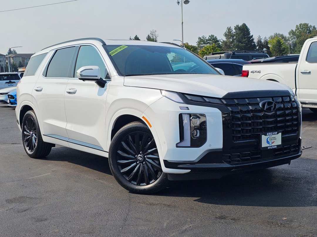 Odometer is 12739 miles below market average! 12 Speakers, 3rd row seats: split-bench, 4-Wheel Disc Brakes, ABS brakes, Air Conditioning, Alloy wheels, AM/FM radio: SiriusXM, Apple CarPlay & Android Auto, Auto High-beam Headlights, Auto-dimming door mirrors, Auto-dimming Rear-View mirror, Auto-leveling suspension, Automatic temperature control, Brake assist, Bumpers: body-color, Cargo Net, Cargo Tray, Carpeted Floor Mats, Compass, Delay-off headlights, Driver door bin, Driver vanity mirror, Dual front impact airbags, Dual front side impact airbags, Electronic Stability Control, Emergency communication system, Exterior Parking Camera Rear, First Aid Kit, Four wheel independent suspension, Front anti-roll bar, Front Bucket Seats, Front Center Armrest, Front dual zone A/C, Front reading lights, Fully automatic headlights, Garage door transmitter: HomeLink, harman/kardon® Speakers, Heads-Up Display, Heated & Ventilated Front Bucket Seats, Heated door mirrors, Heated front seats, Heated rear seats, Heated steering wheel, Illuminated entry, Knee airbag, Leather steering wheel, Low tire pressure warning, Memory seat, Microfiber Suede Seat Trim, Navigation System, Occupant sensing airbag, Option Group 01, Outside temperature display, Overhead airbag, Overhead console, Panic alarm, Passenger door bin, Passenger vanity mirror, Power door mirrors, Power driver seat, Power Liftgate, Power moonroof, Power passenger seat, Power steering, Power windows, Radio data system, Radio: AM/FM/MP3 Premium Audio System, Rain sensing wipers, Rear air conditioning, Rear anti-roll bar, Rear audio controls, Rear reading lights, Rear side impact airbag, Rear window defroster, Rear window wiper, Reclining 3rd row seat, Remote keyless entry, Roadside Assistance Kit, Roof rack, Security system, Speed control, Speed-sensing steering, Split folding rear seat, Spoiler, Steering wheel mounted audio controls, Tachometer, Telescoping steering wheel, Tilt steering wheel, Traction control, Trip computer, Turn signal indicator mirrors, Variably intermittent wipers, Ventilated front seats, Ventilated rear seats, Wheels: 20" x 7.5J Black Liquid Paint Alloy. 2025 Hyundai Palisade Calligraphy Night Edition V6 8-Speed Automatic with SHIFTRONIC AWD 4D Sport Utility Hyper White19/24 City/Highway MPGTo see more quality vehicles like this one right here just click on http://www.fordofkirkland.com or dial (425) 500-1074.