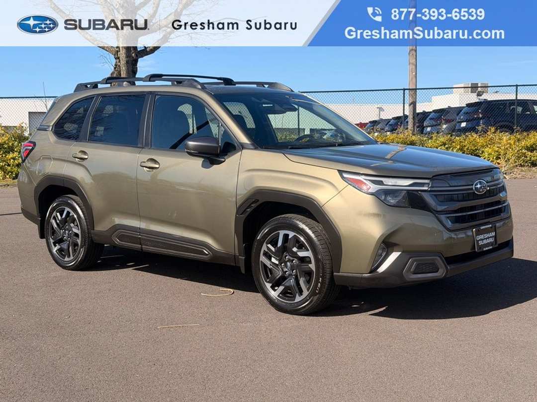 ***ACCIDENT-FREE CARFAX***, ***APPLE CAR PLAY/ANDROID AUTO***, ***CARFAX 1-OWNER***, ***EYESIGHT***, ***FULLY SERVICED***, ***HEATED SEATS***, *LEATHER SEATS*, Subaru Certified Pre-Owned Certified, 4-Wheel Disc Brakes, 6 Speakers, ABS brakes, Air Conditioning, Alloy wheels, AM/FM radio: SiriusXM with 360L, Anti-whiplash front head restraints, Auto High-beam Headlights, Automatic temperature control, Brake assist, Bumpers: body-color, Driver door bin, Driver vanity mirror, Dual front impact airbags, Dual front side impact airbags, Electronic Stability Control, Emergency communication system: MySubaru Safety (3-year free trial), Exterior Parking Camera Rear, Four wheel independent suspension, Front anti-roll bar, Front Bucket Seats, Front Center Armrest, Front dual zone A/C, Front fog lights, Front reading lights, Fully automatic headlights, Heated door mirrors, Heated Front Bucket Seats, Heated front seats, Heated steering wheel, Illuminated entry, Knee airbag, Leather steering wheel, Low tire pressure warning, Occupant sensing airbag, Outside temperature display, Overhead airbag, Overhead console, Panic alarm, Passenger door bin, Passenger vanity mirror, Perforated Leather-Trimmed Upholstery, Power door mirrors, Power driver seat, Power Liftgate, Power moonroof: Panoramic, Power passenger seat, Power steering, Power windows, Radio data system, Radio: Subaru 11.6" Multimedia Plus System, Rear anti-roll bar, Rear seat center armrest, Rear window defroster, Rear window wiper, Remote keyless entry, Security system, Speed control, Speed-sensing steering, Split folding rear seat, Spoiler, Steering wheel mounted audio controls, Tachometer, Telescoping steering wheel, Tilt steering wheel, Traction control, Trip computer, Turn signal indicator mirrors, Variably intermittent wipers, Wheels: 18" x 7.0 J Dark Metallic Aluminum-Alloy. Recent Arrival! 2025 Subaru Forester Limited 4D Sport Utility Lineartronic CVT 2.5L 4-Cylinder DOHC 16V AWD Autumn Green MetallicVisit Gresham Subaru online at www.GreshamSubaru.com and see why we service Portland and Vancouver as The BIG Subaru Store with the SMALL Prices!!!